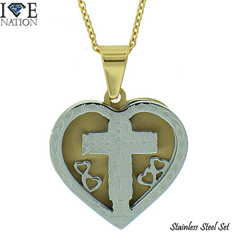 Stainless Steel Two-Tone Heart with Cross Set STSET99 Login to see pricing
