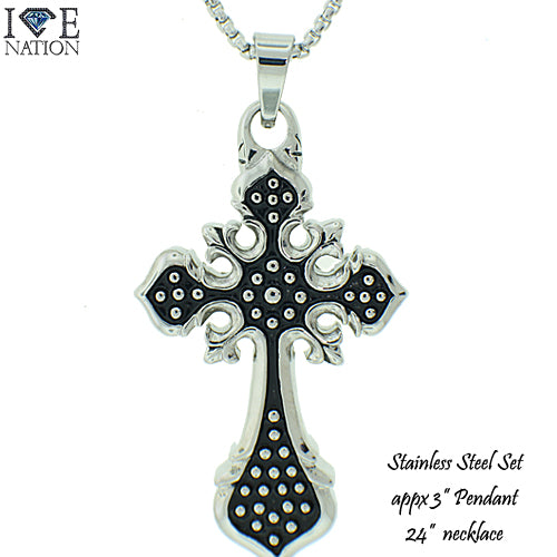 Stainless Steel Textured Cross Pendant Set STSET3193 Login to see pricing