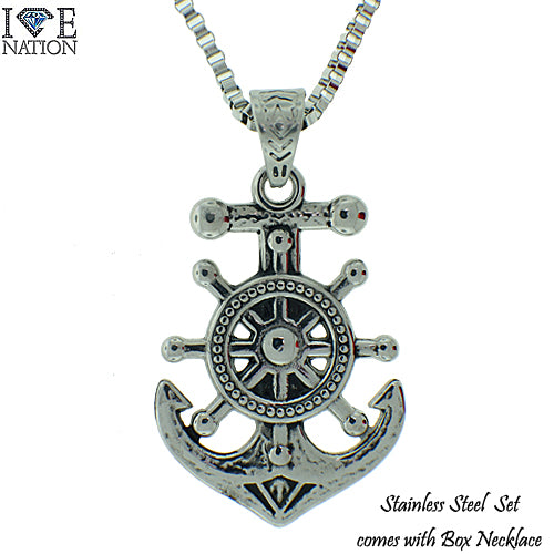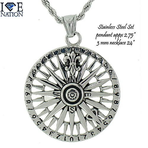 Stainless Steel Polished Compass Pendant Set STSET318 Login to see pricing