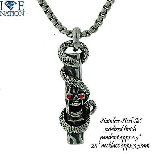 Stainless Steel Skull with Snake Set STSET239 Login to see pricing