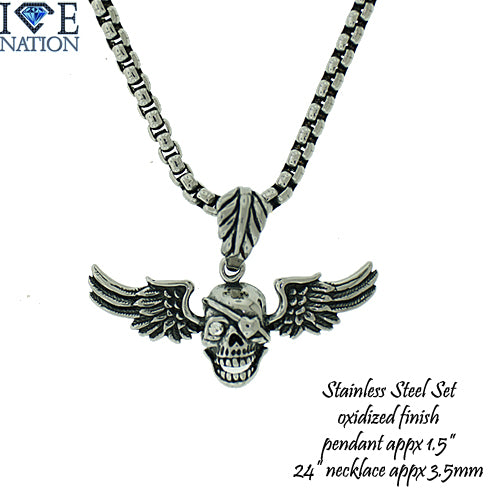 Stainless Steel Skull with Wings Set STSET246 Login to see pricing