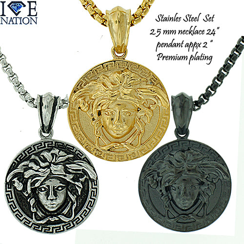 Stainless Steel Medusa Head Pendant Set STSET266 Login to see pricing
