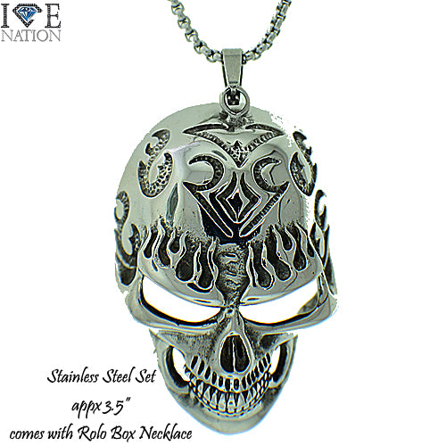Stainless Steel Skull Pendant Set STSET339 Login to see pricing