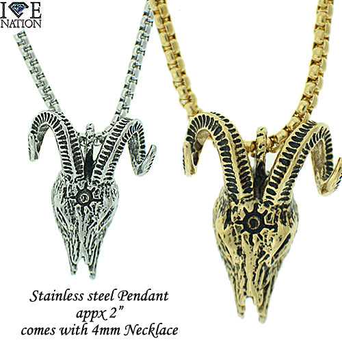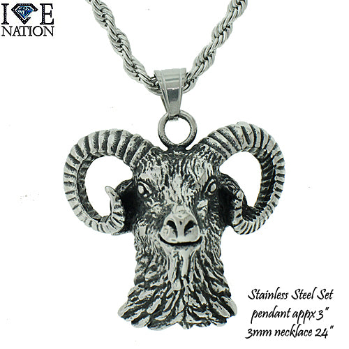 Stainless Steel Ram Skull Pendant Set STSET3227 Login to see pricing