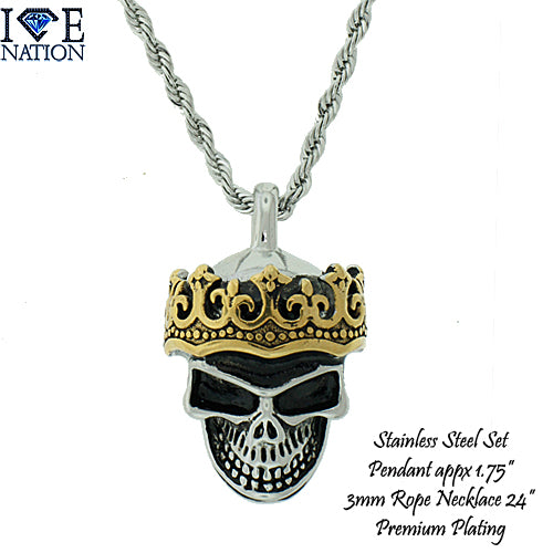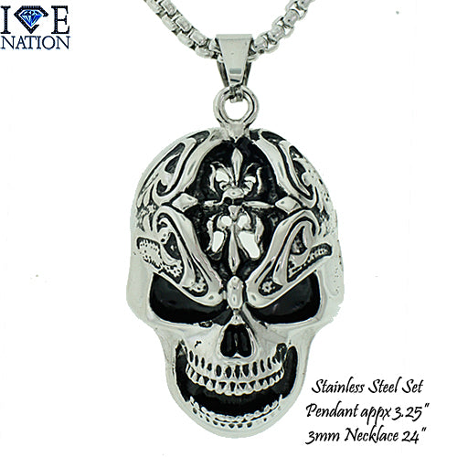 Stainless Steel Skull Pendant Set STSET237 Login to see pricing