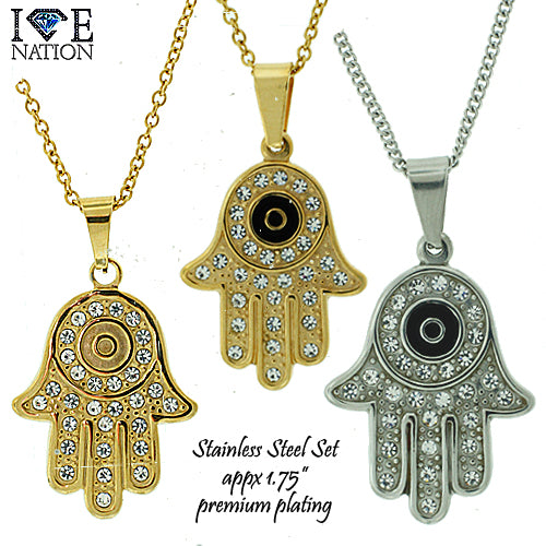 Stainless Steel Two-Tone Hamsa Hand Set STSET481 Login to see pricing
