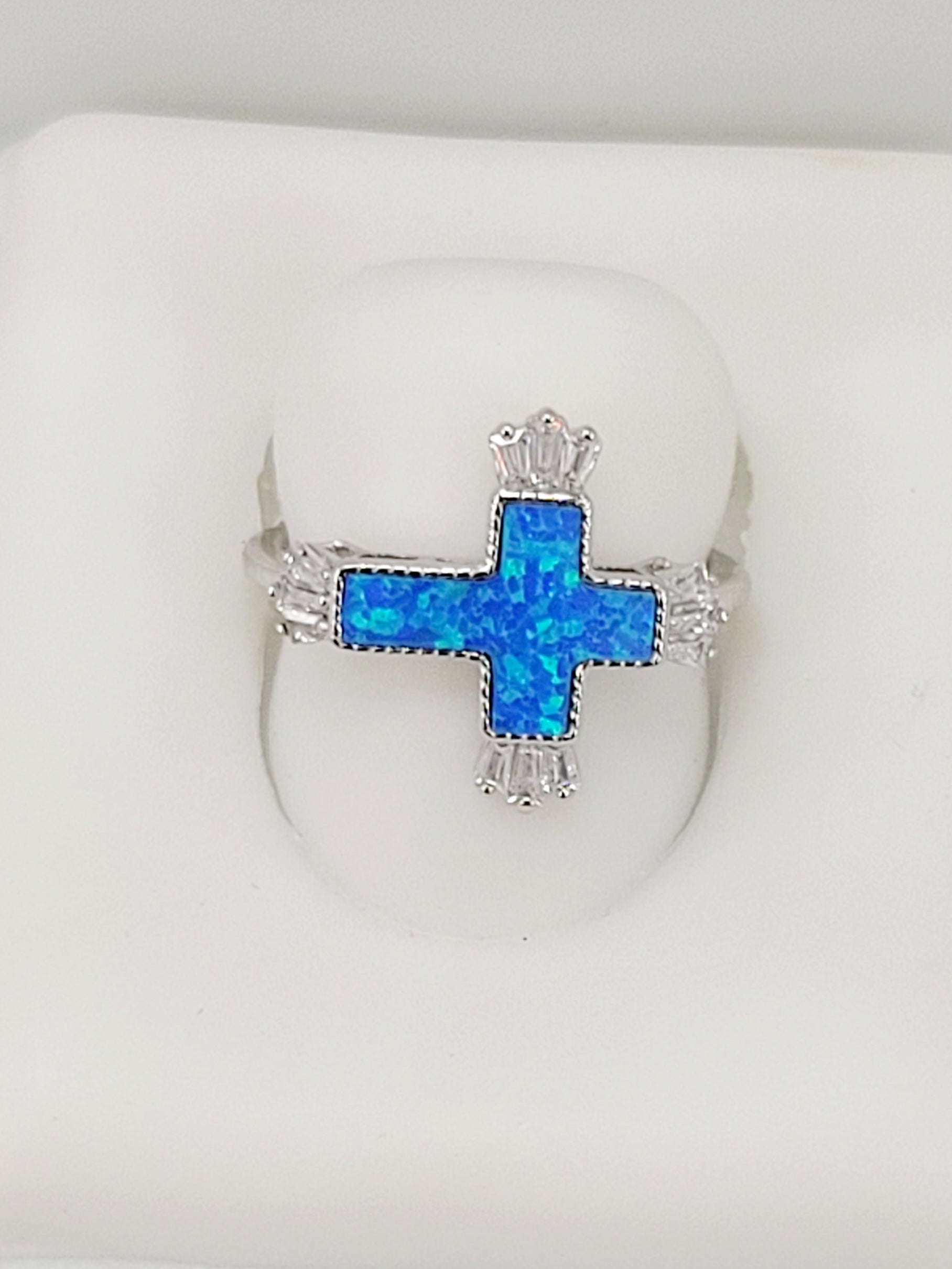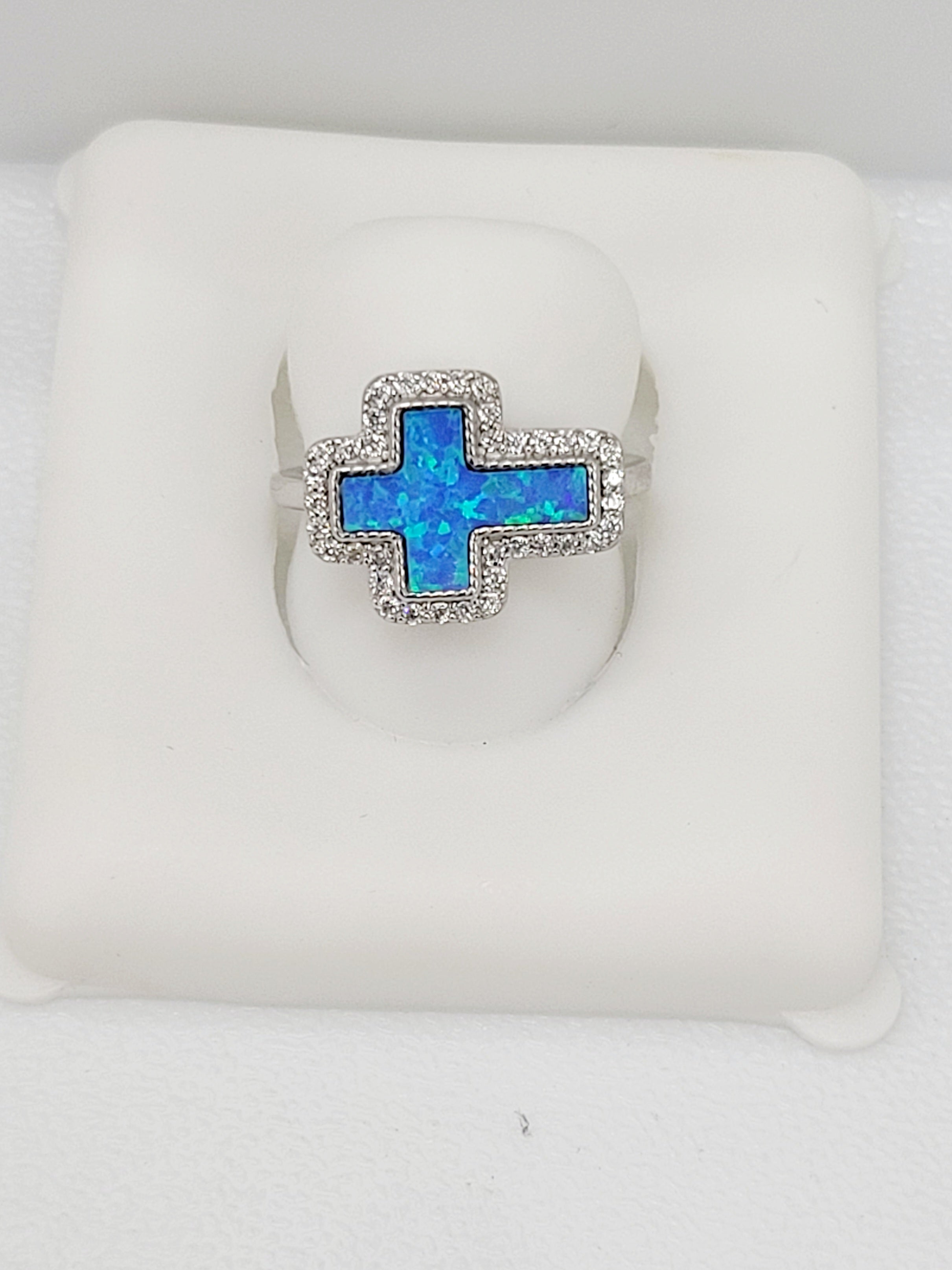 Sterling Silver Cross Opal Ring - 40551A Login to see pricing