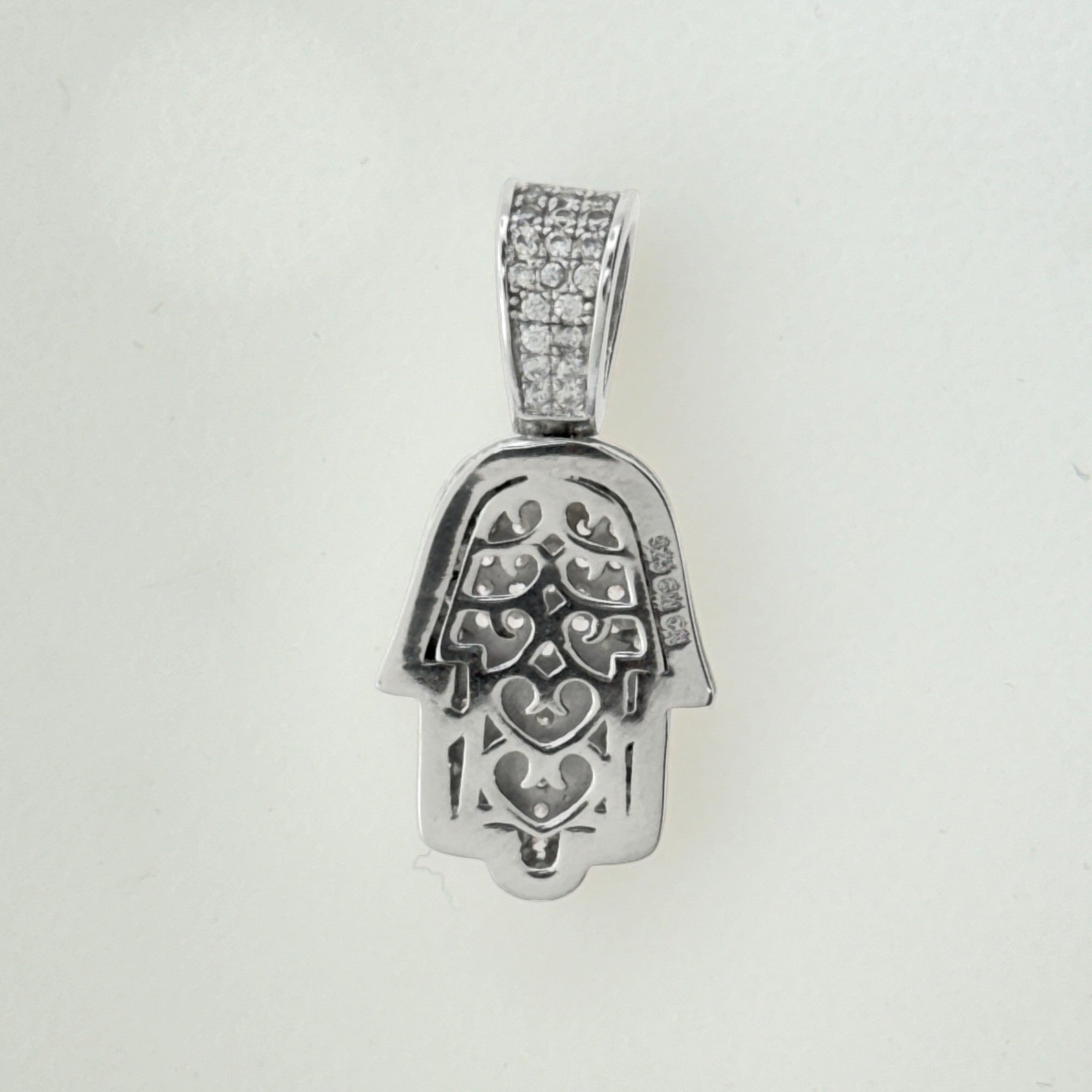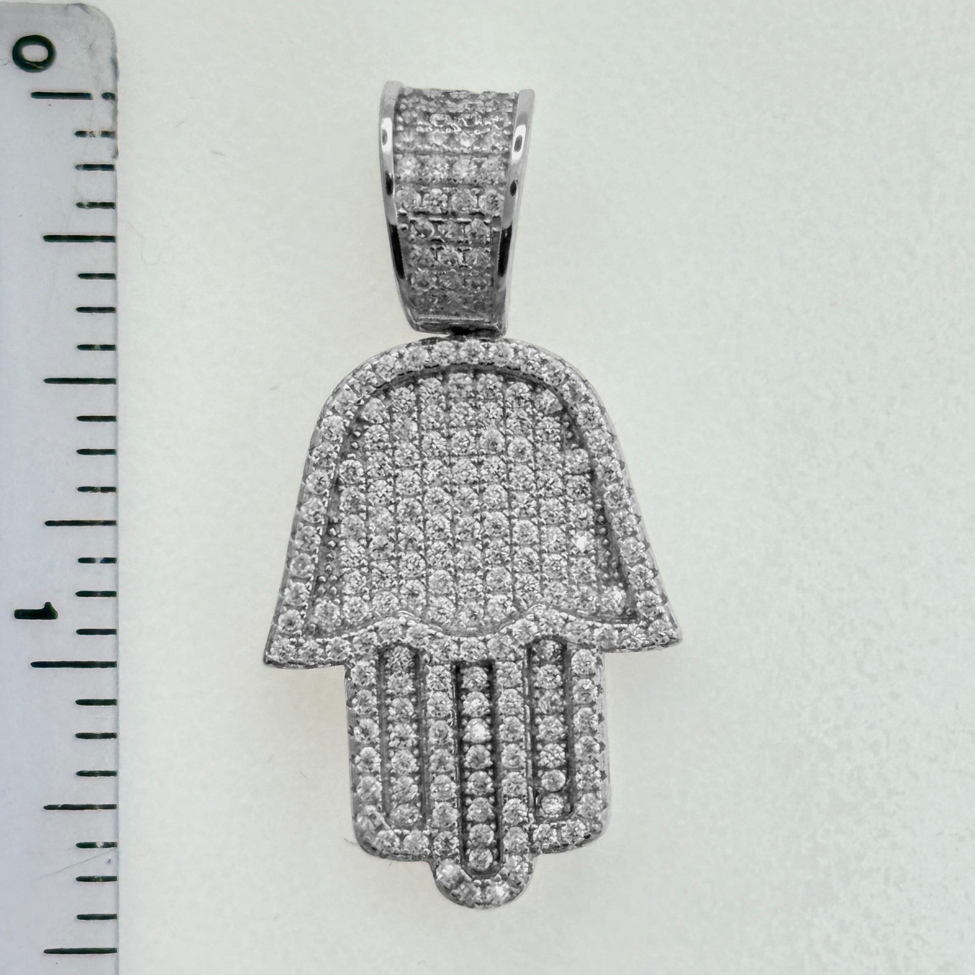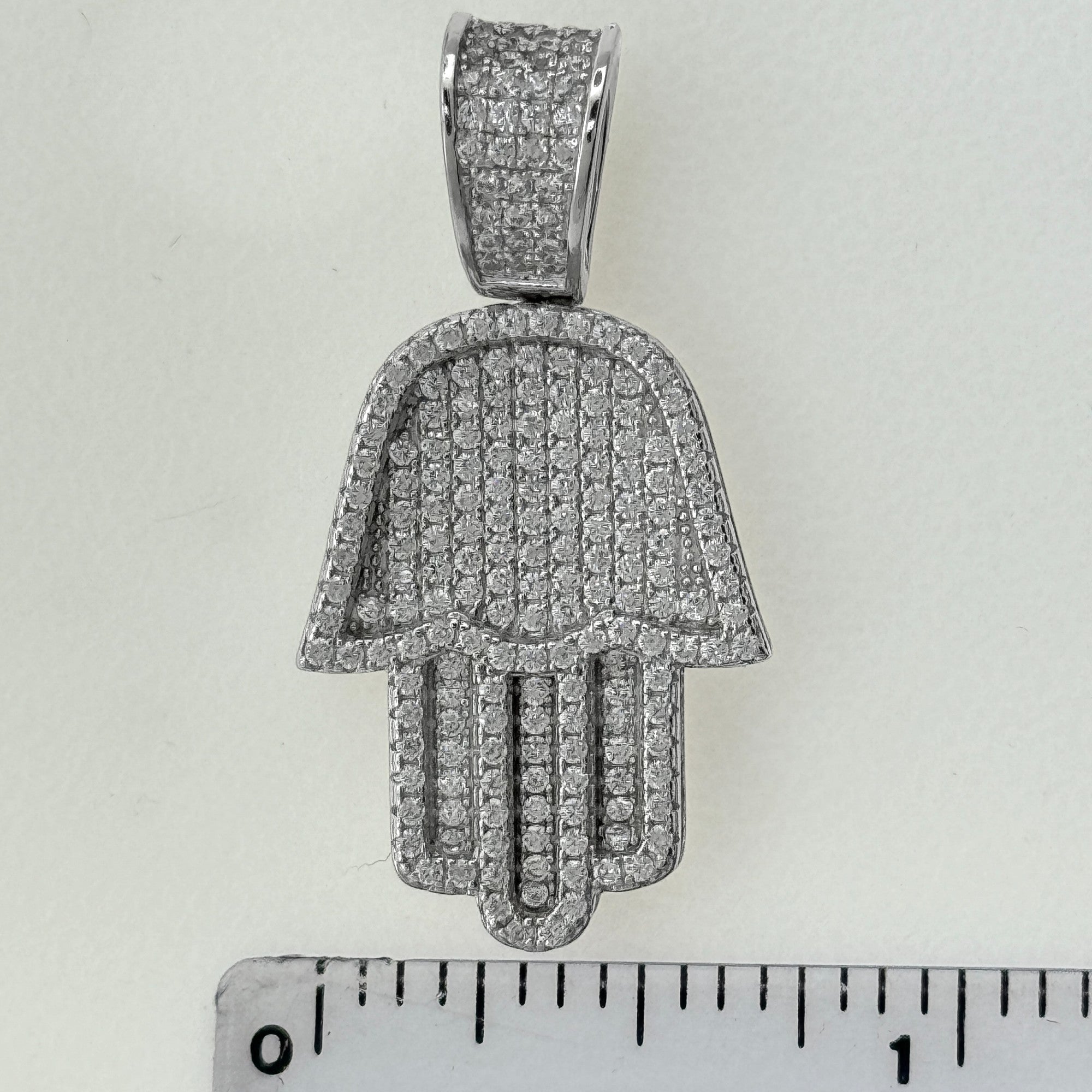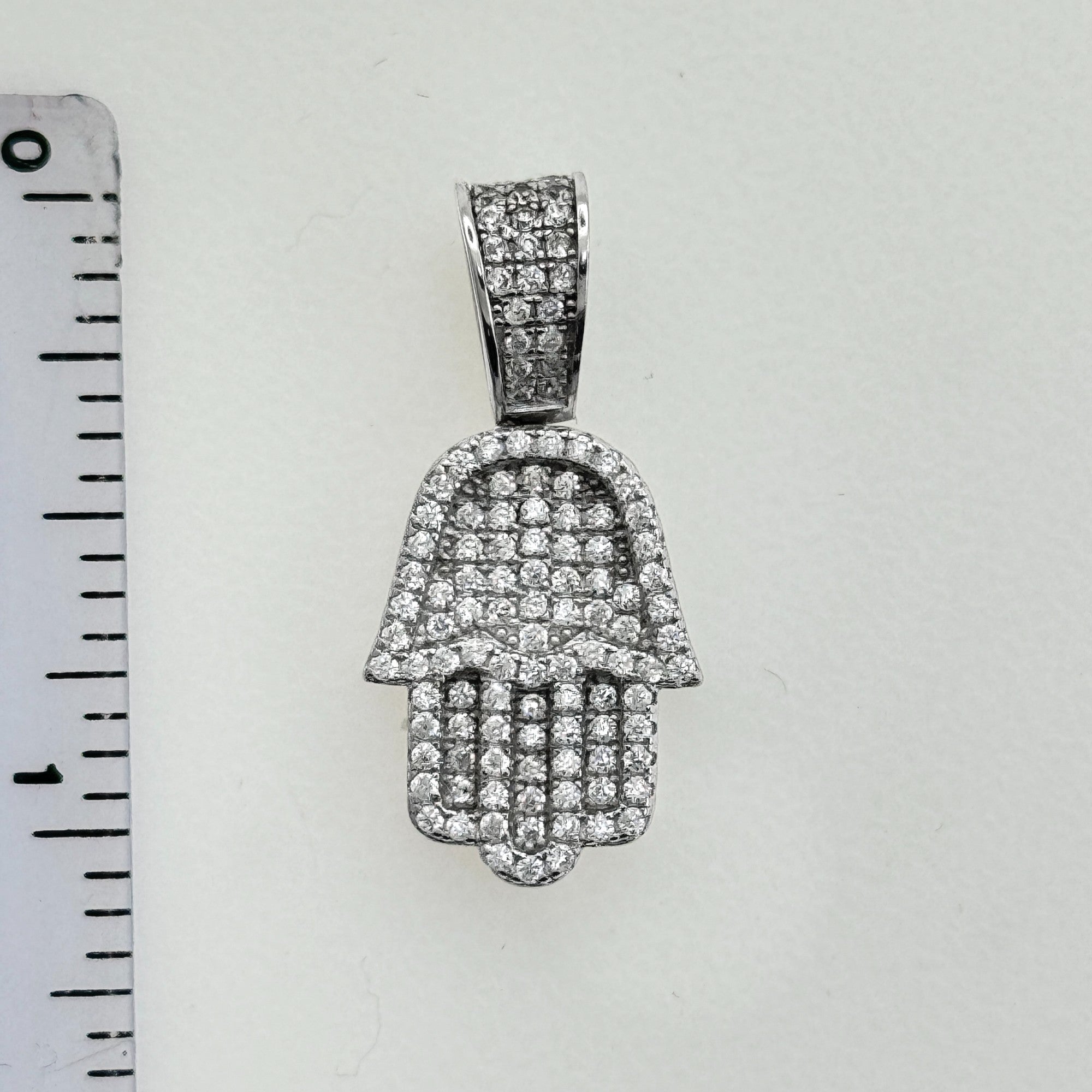 Sterling Silver CZ Hamsa Hand Pendant Login to see pricing