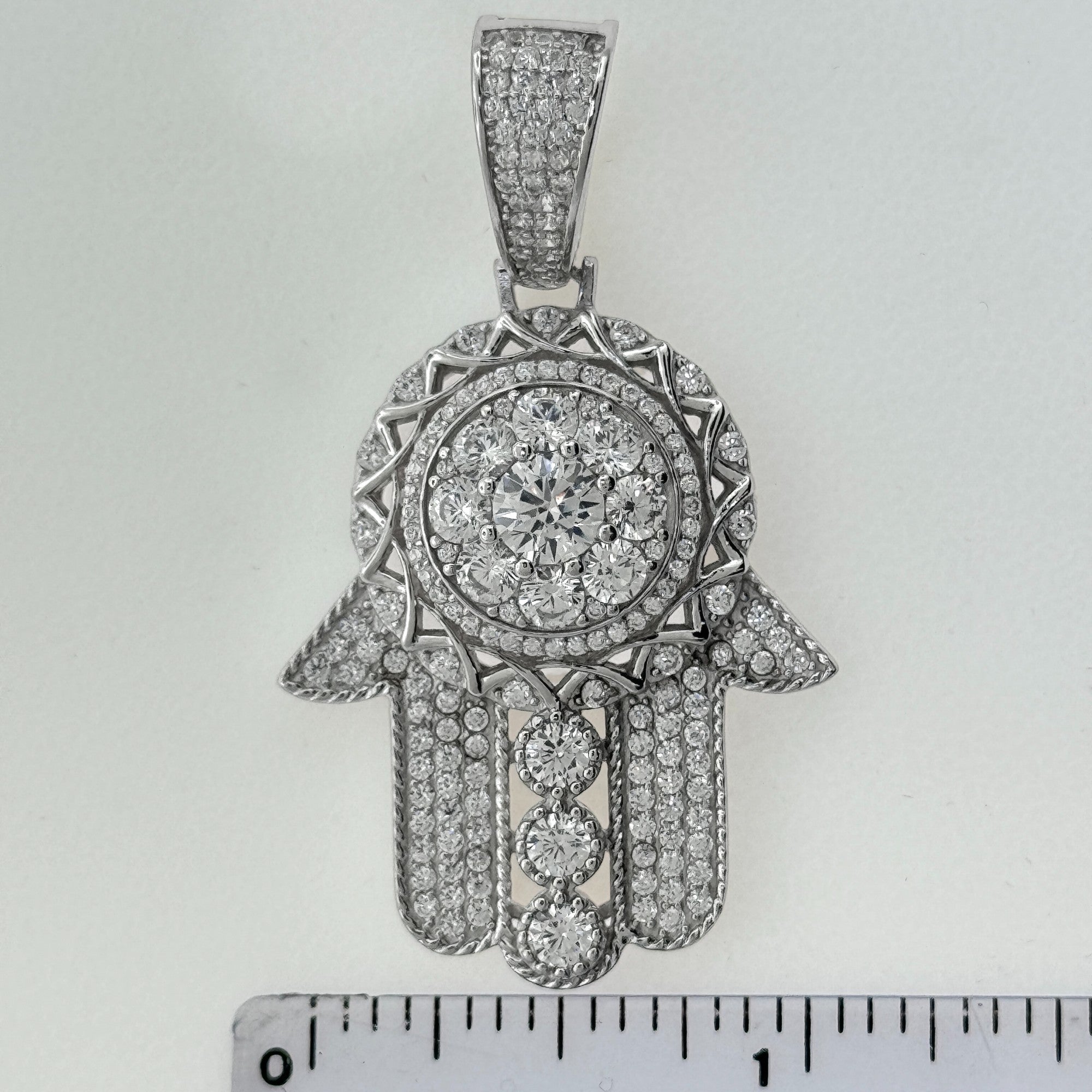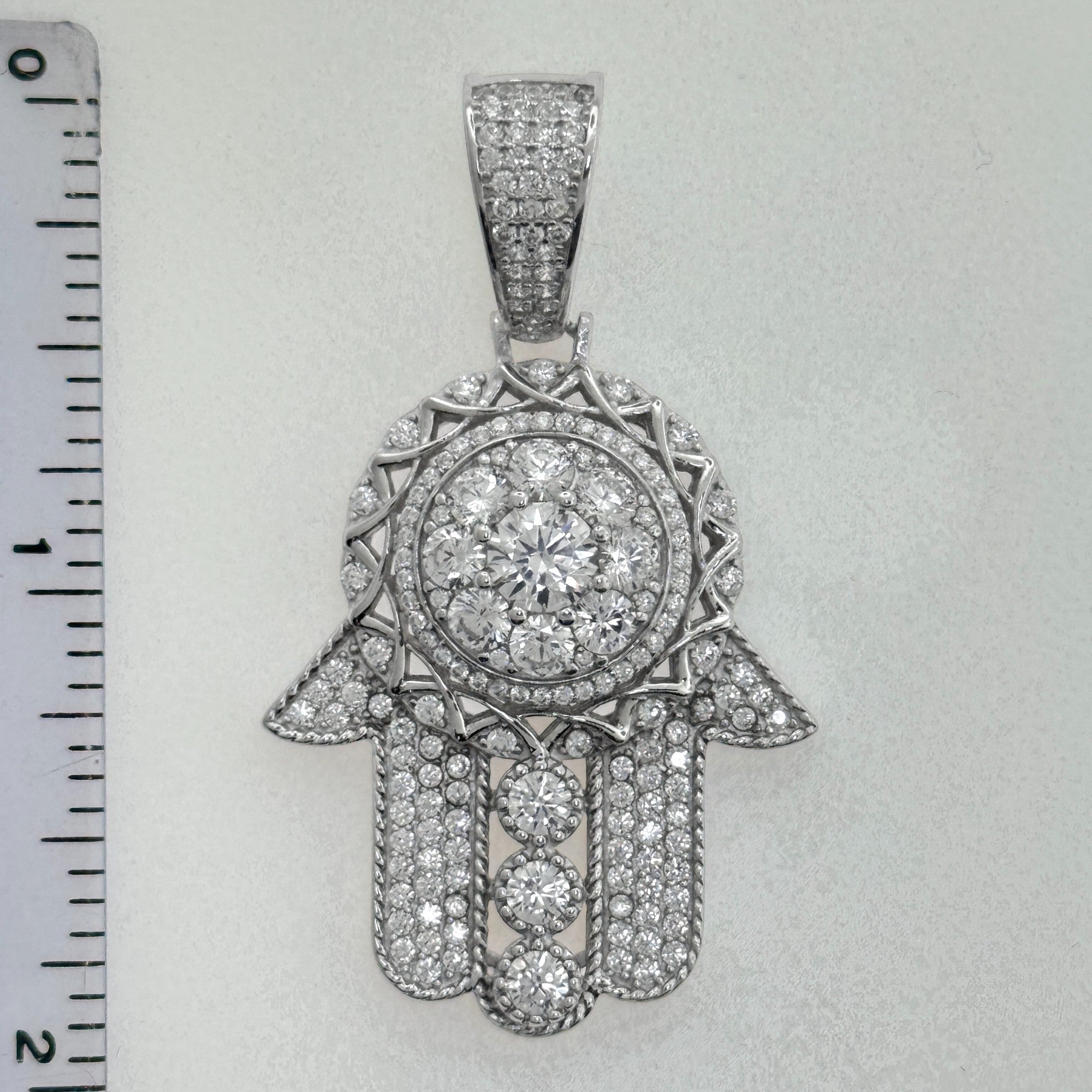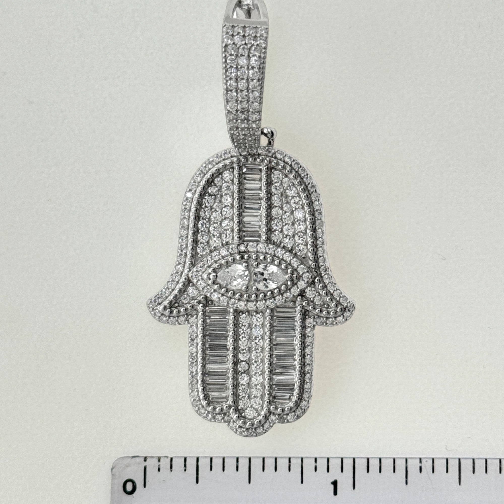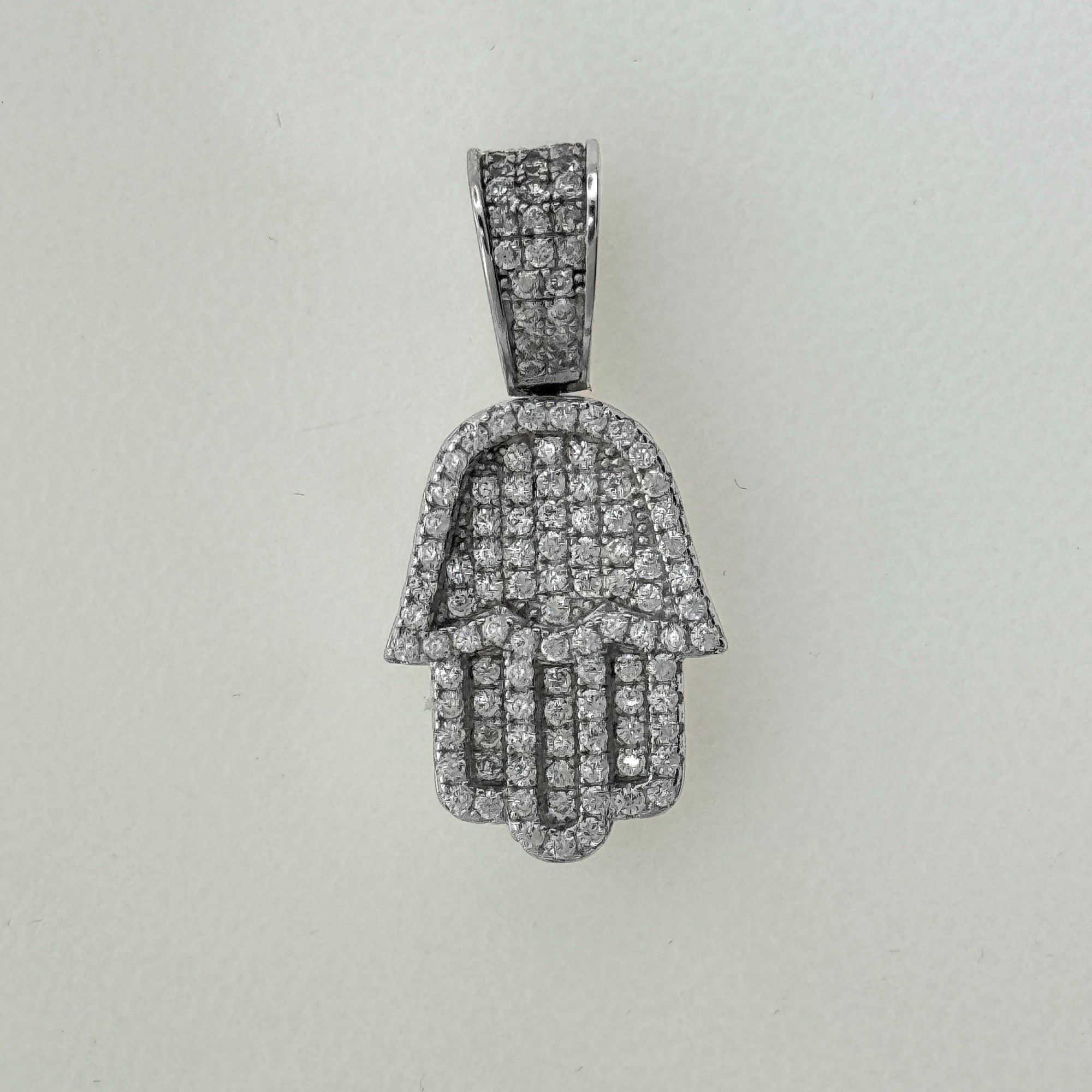 Sterling Silver CZ Hamsa Hand Pendant Login to see pricing