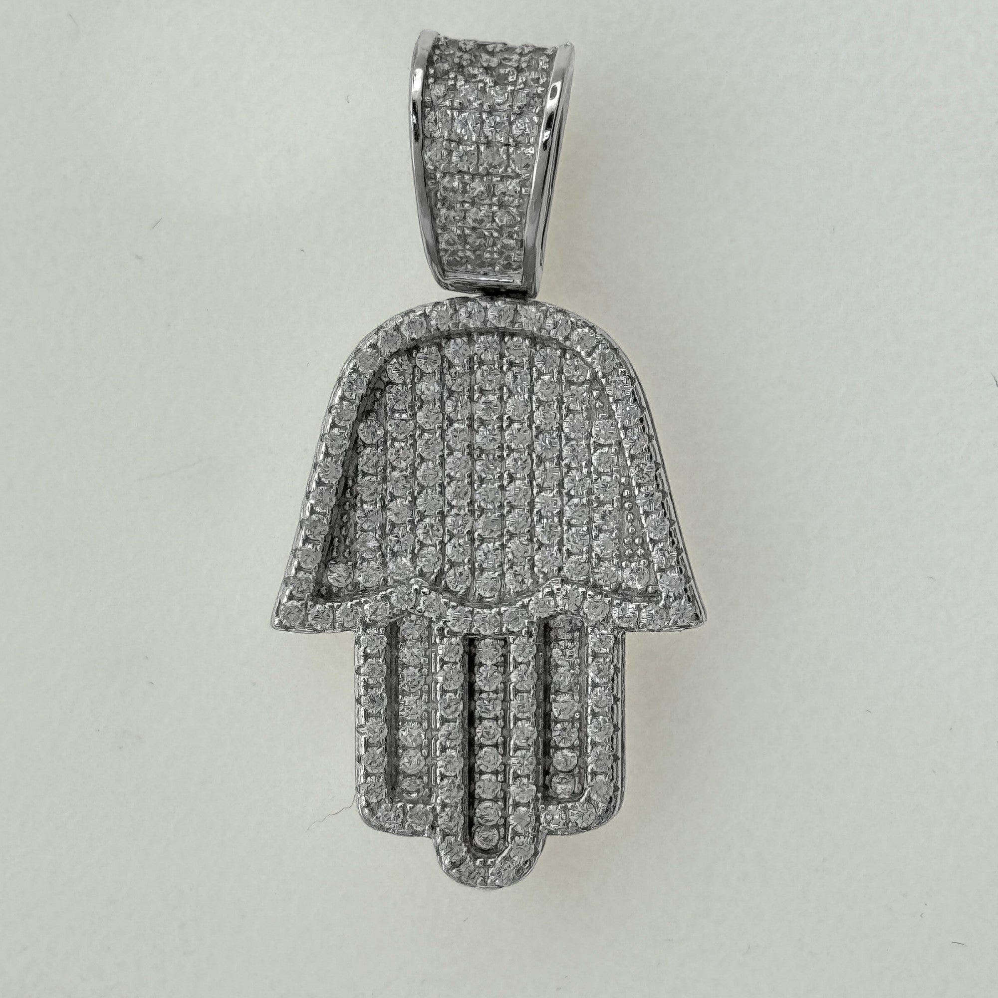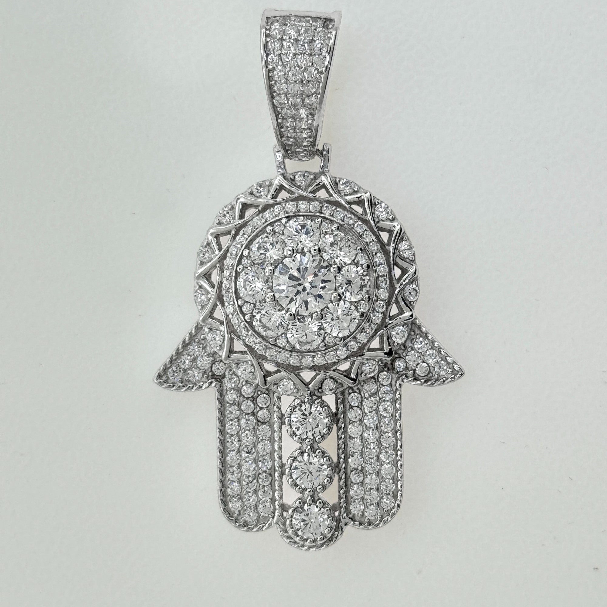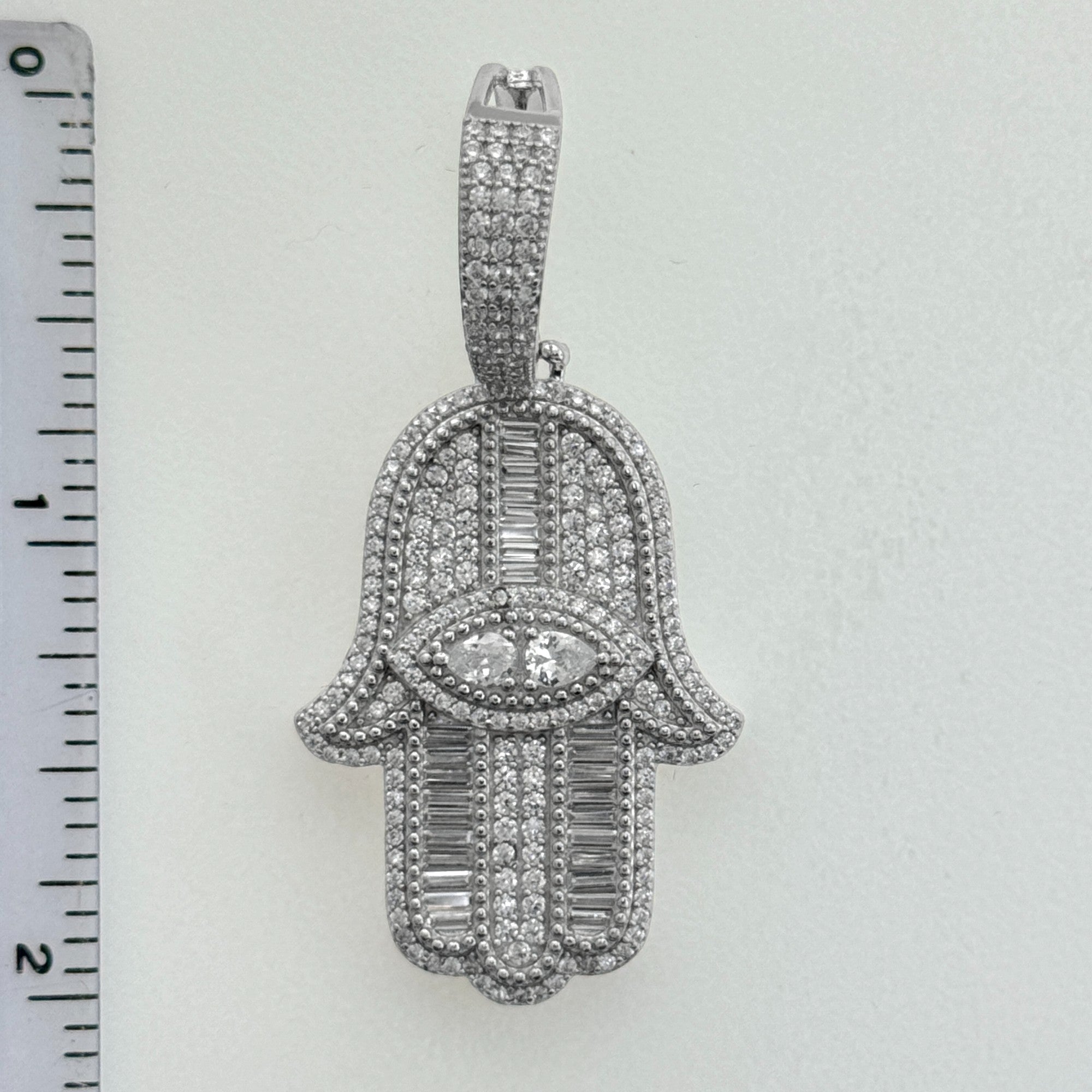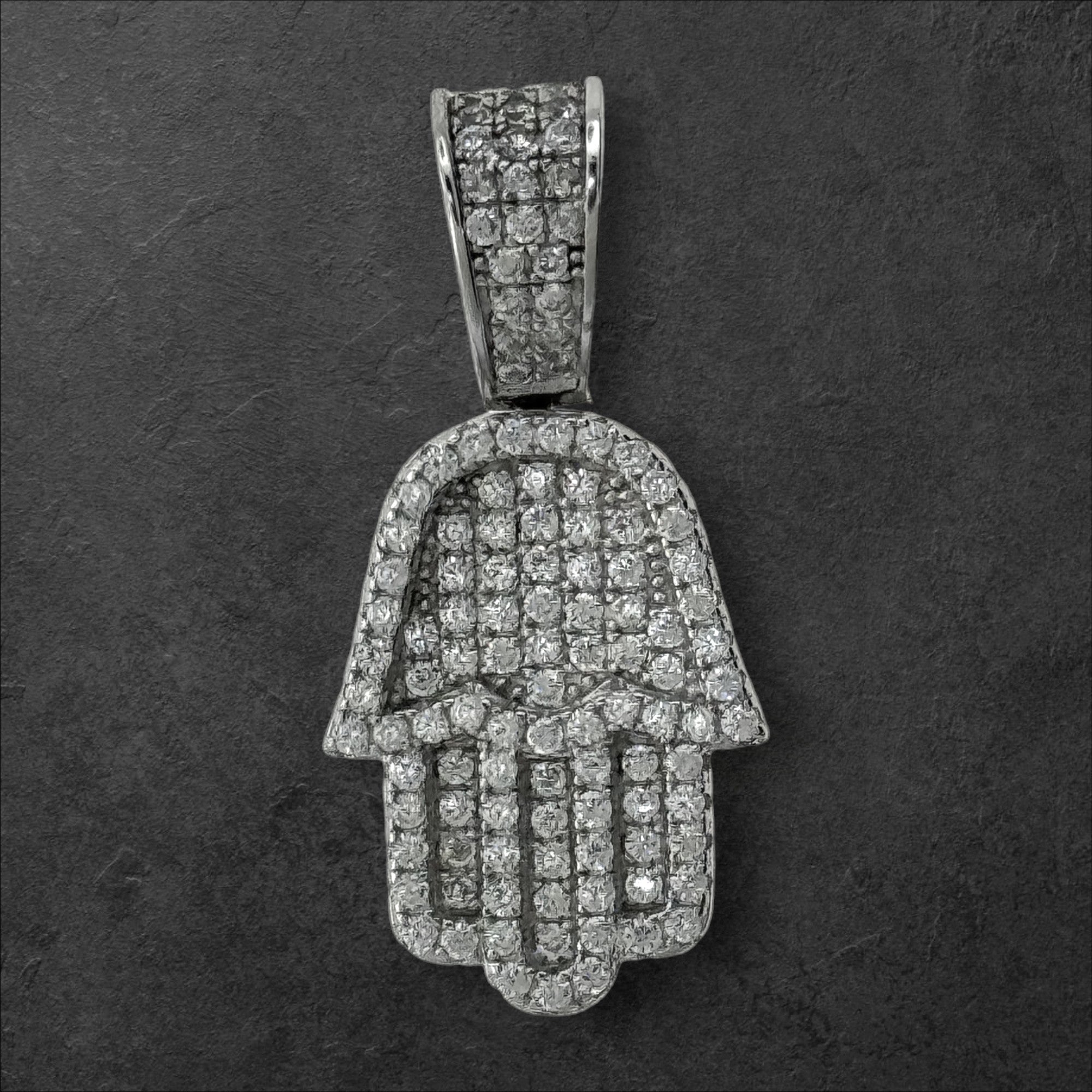 Sterling Silver CZ Hamsa Hand Pendant Login to see pricing