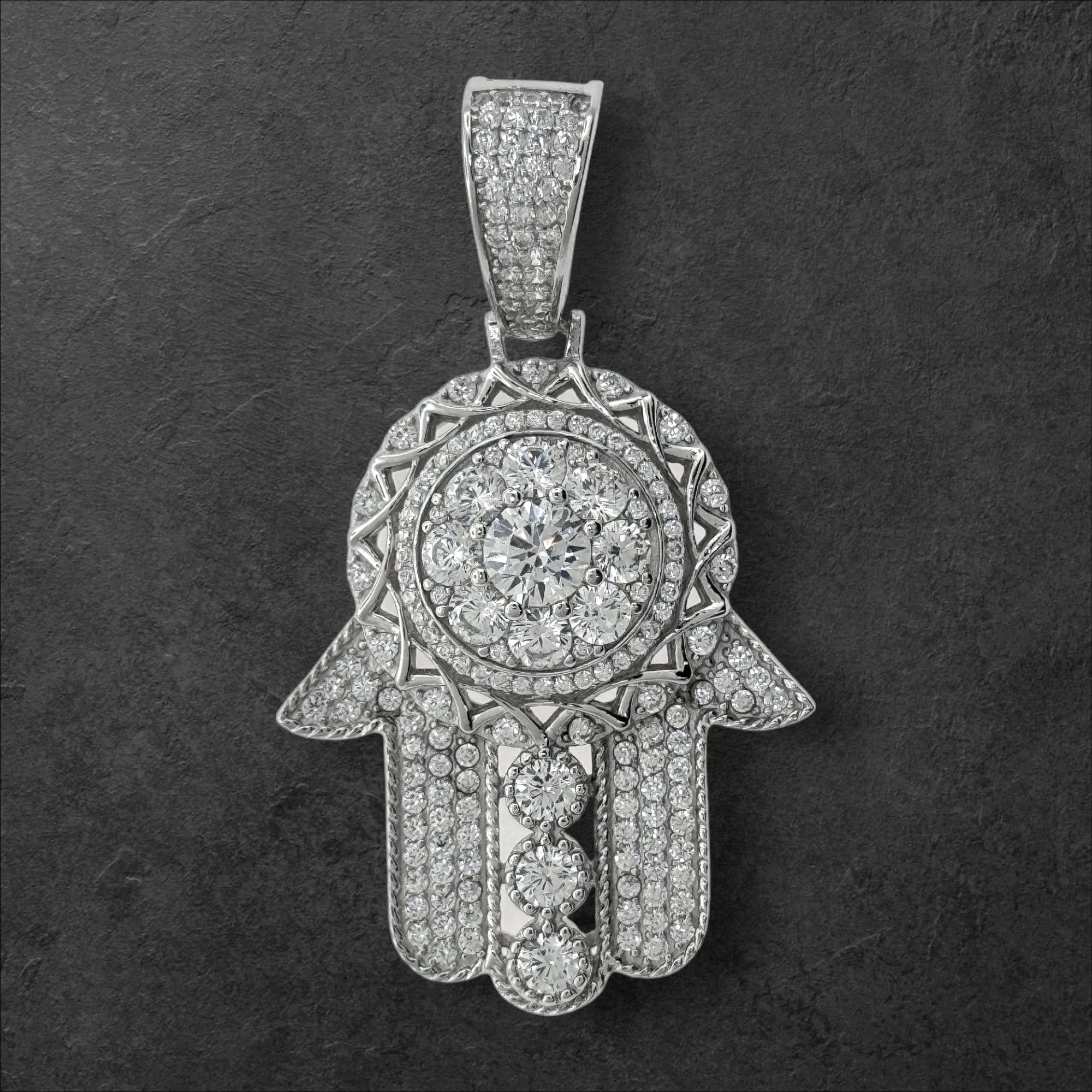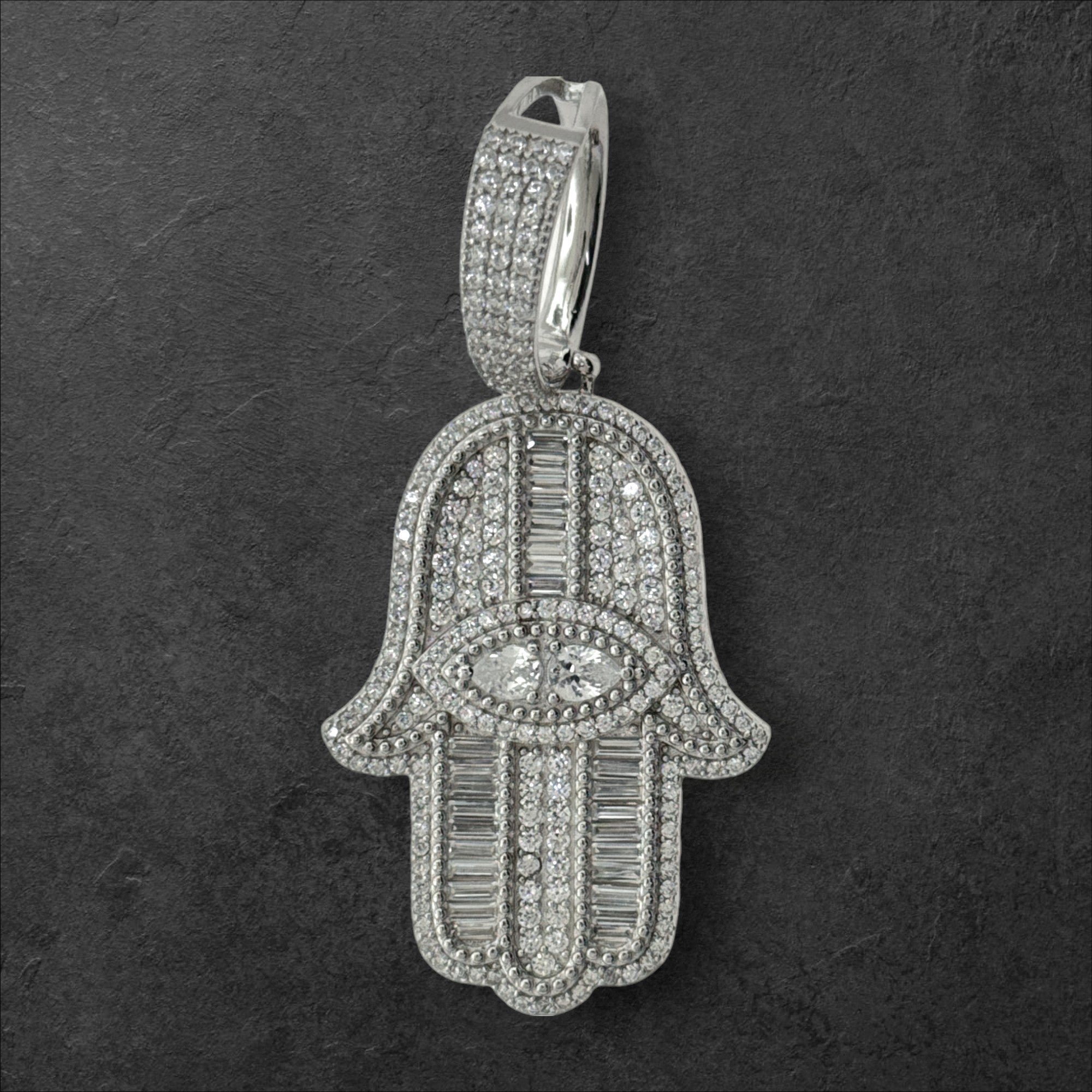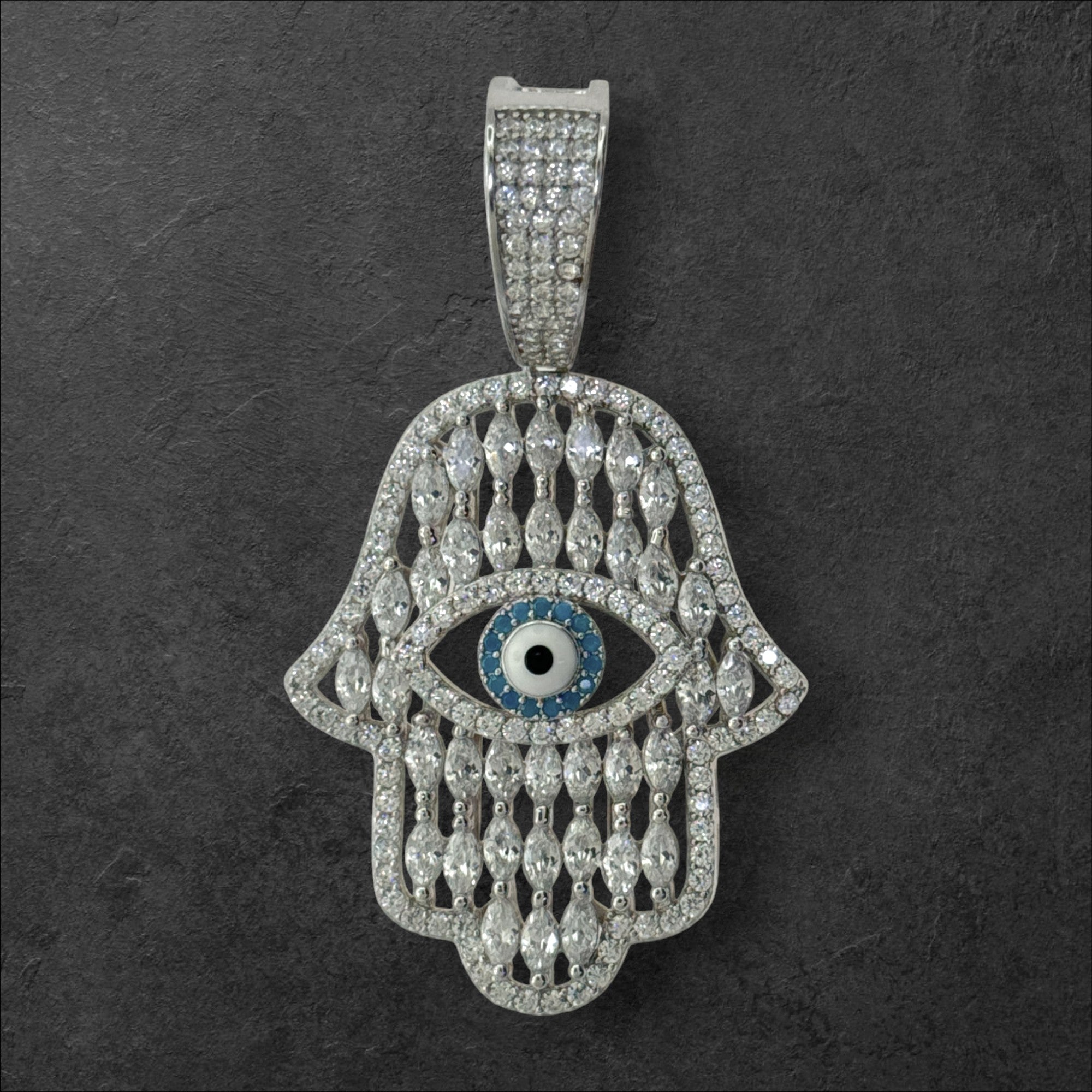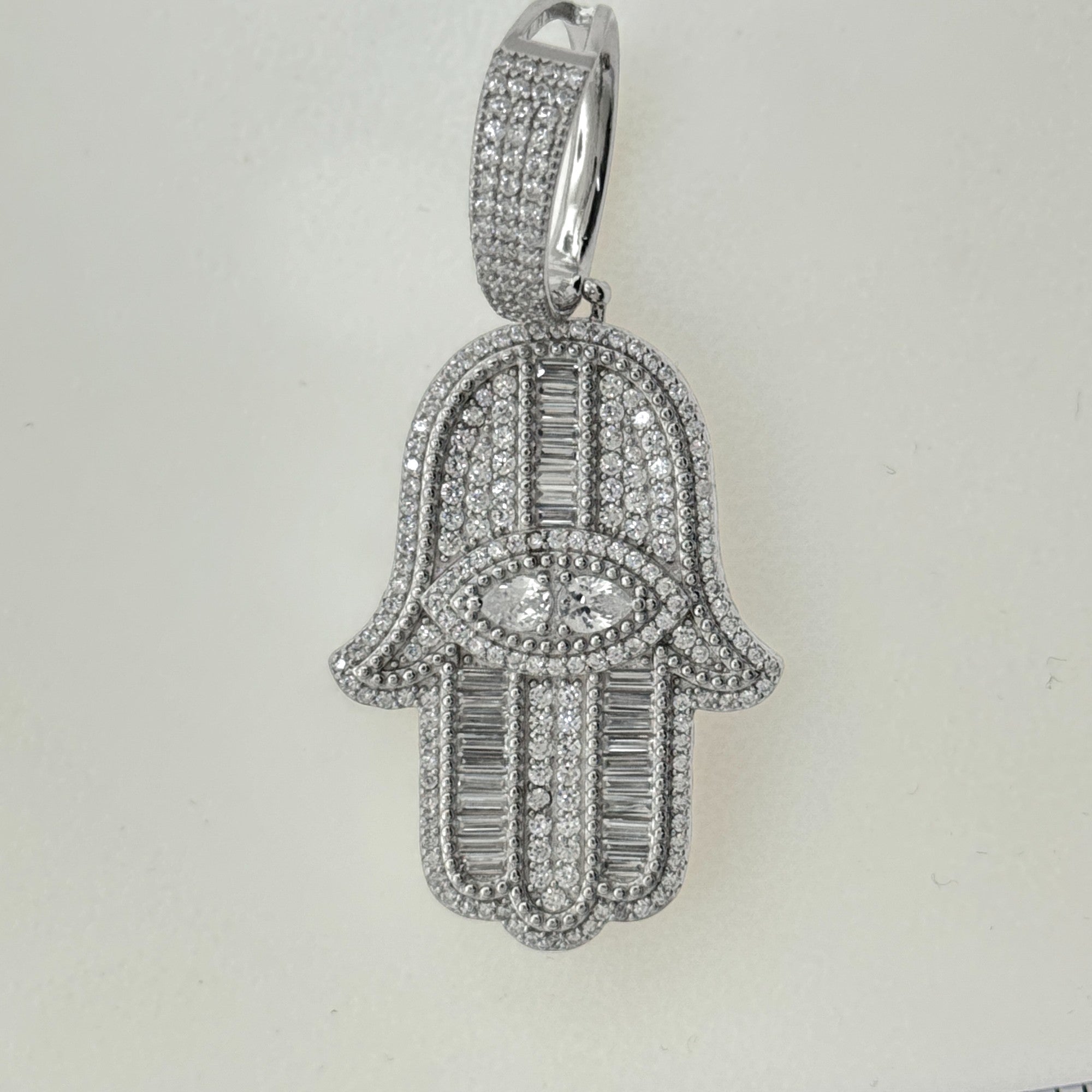 Sterling Silver CZ Hamsa Hand Pendant Login to see pricing