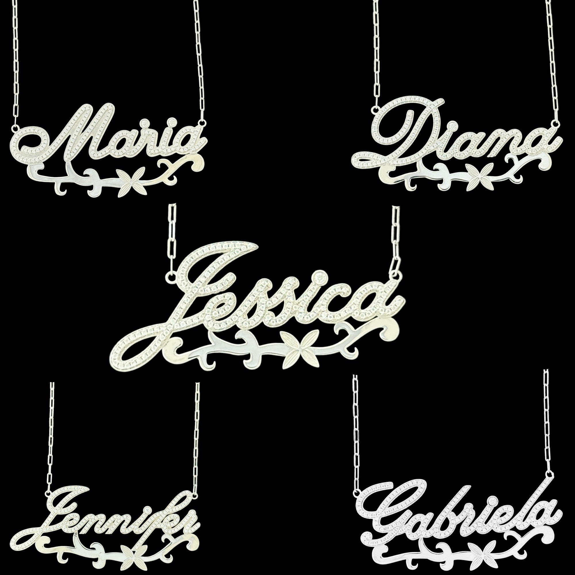 Sterling Silver Custom Name Necklace With Moissanite Login to see pricing