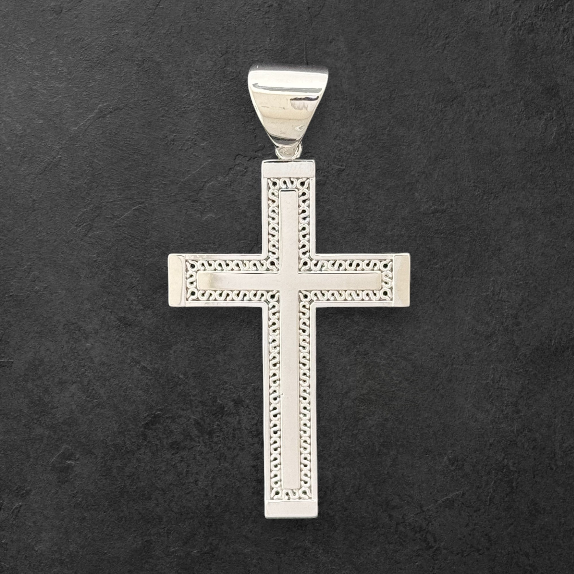 Sterling Silver Cross Pendant with Intricate Design Login to see pricing