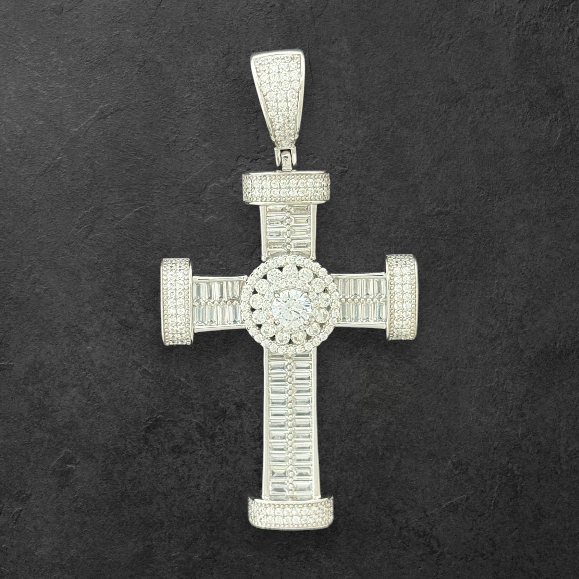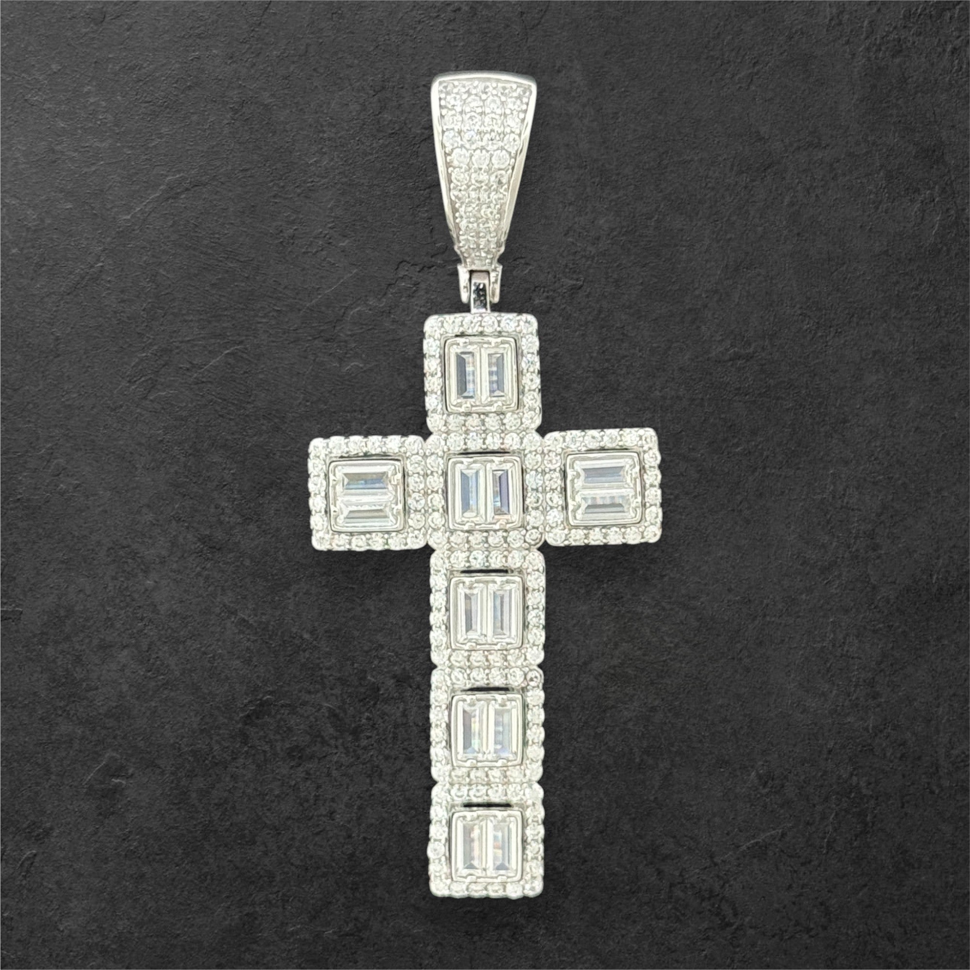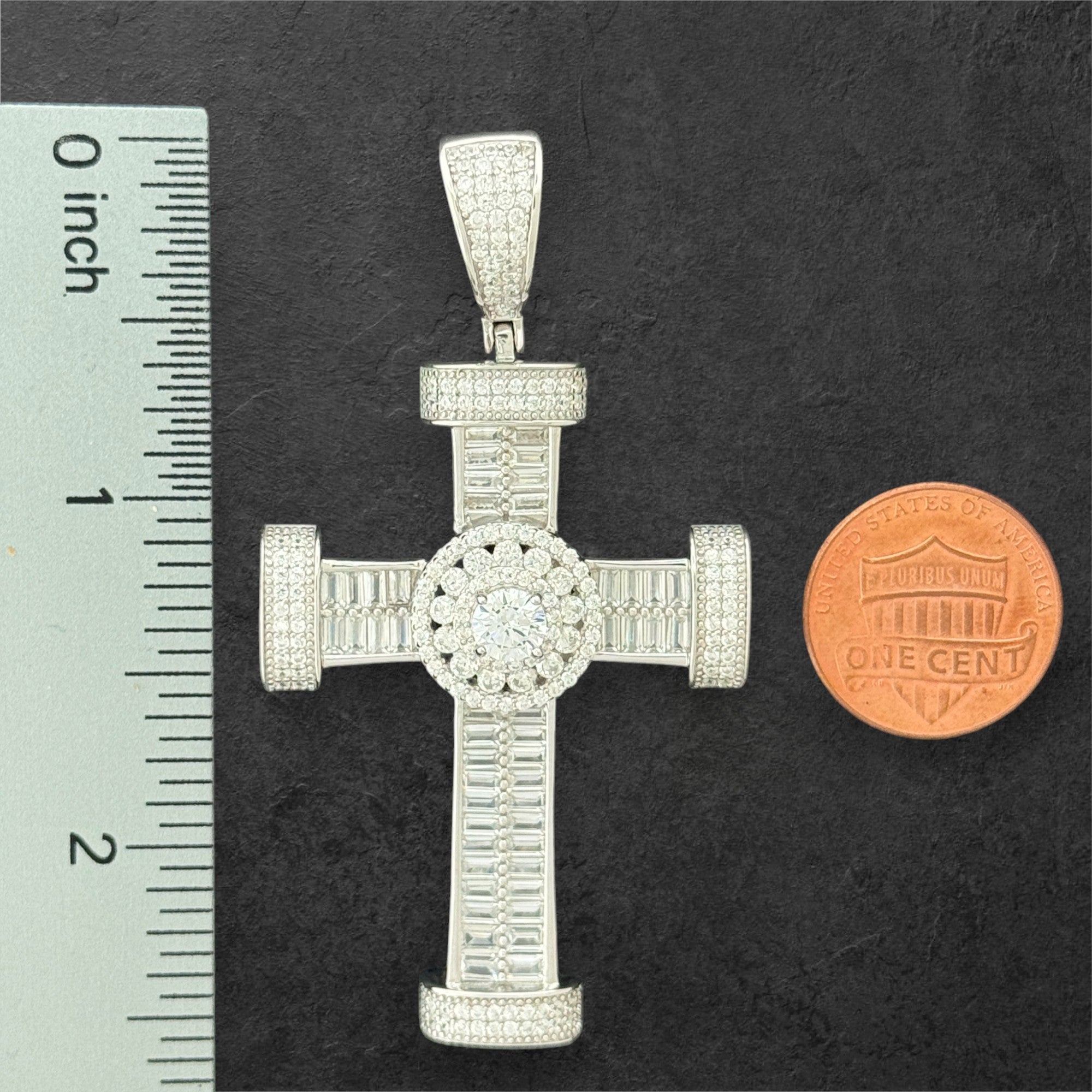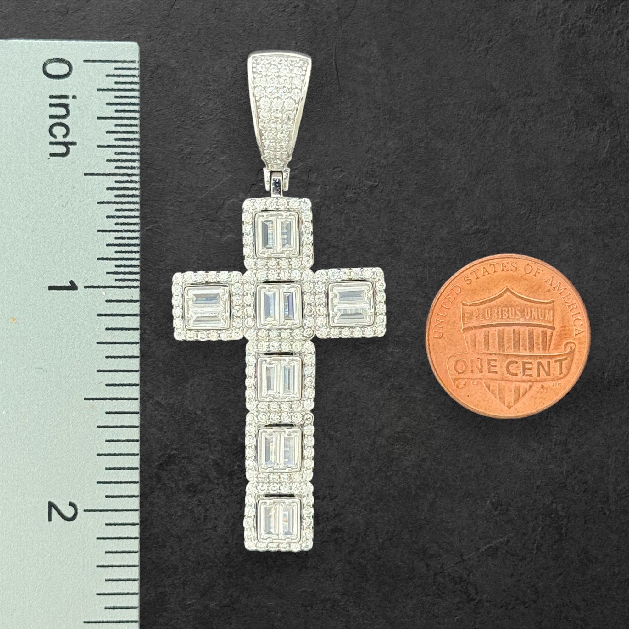 Sterling Silver Cross Pendant with Baguette CZ Stones Login to see pricing