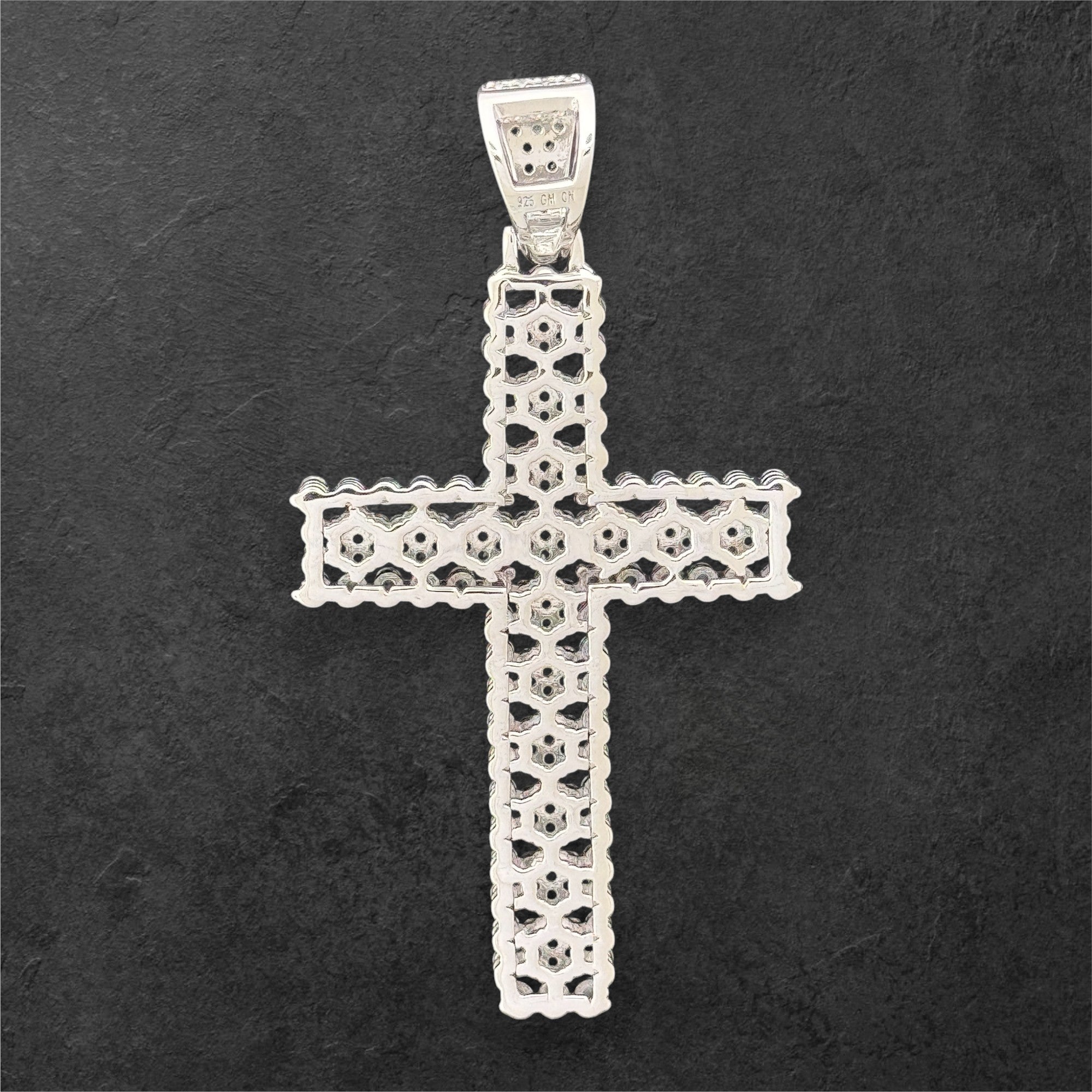 Sterling Silver Cross Pendant with Intricate CZ Design Login to see pricing