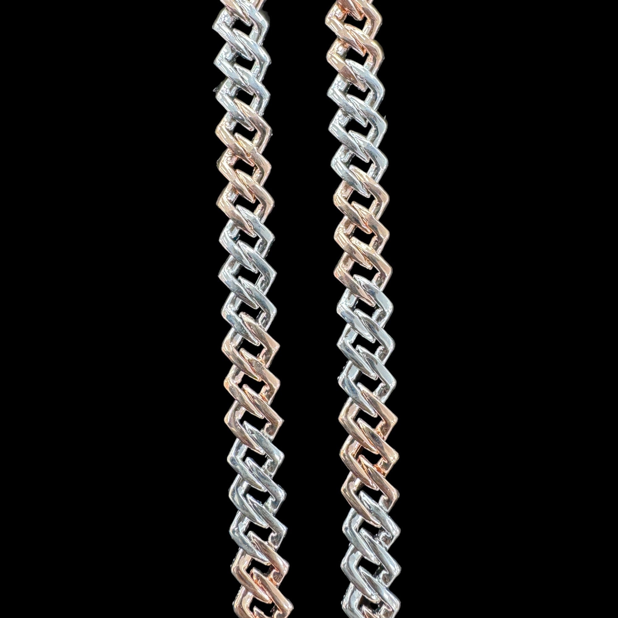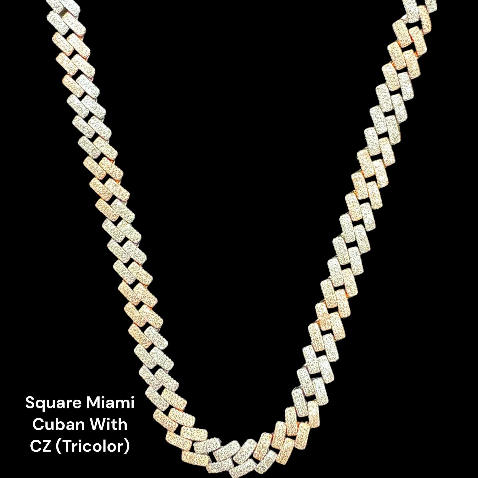 Sterling Silver Square Miami Cuban(Tricolor) With CZ Necklace Login to see pricing