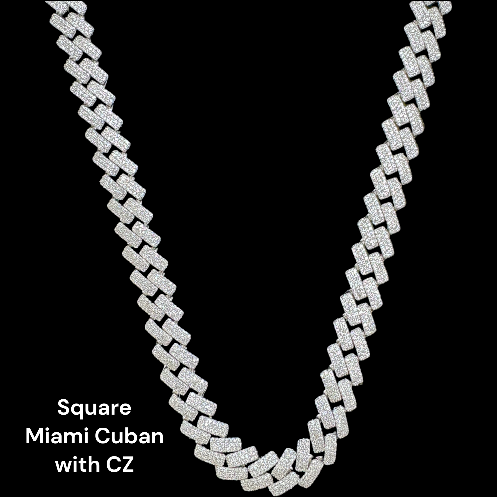 Sterling Silver Square Miami Cuban CZ Necklace Login to see pricing