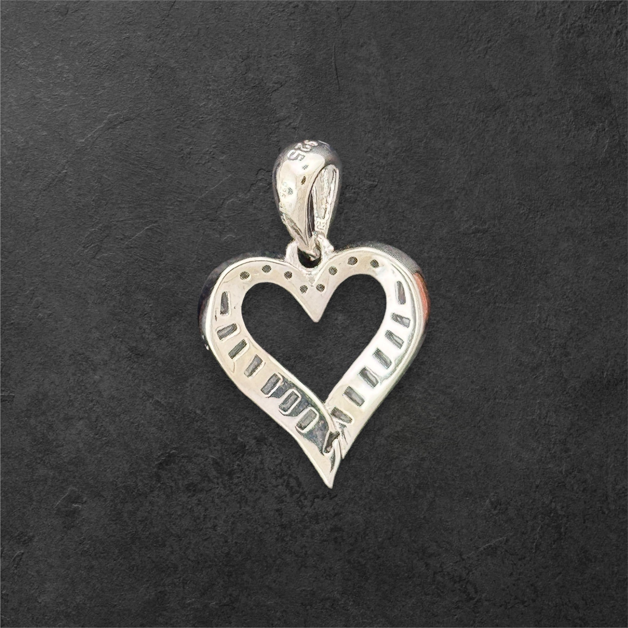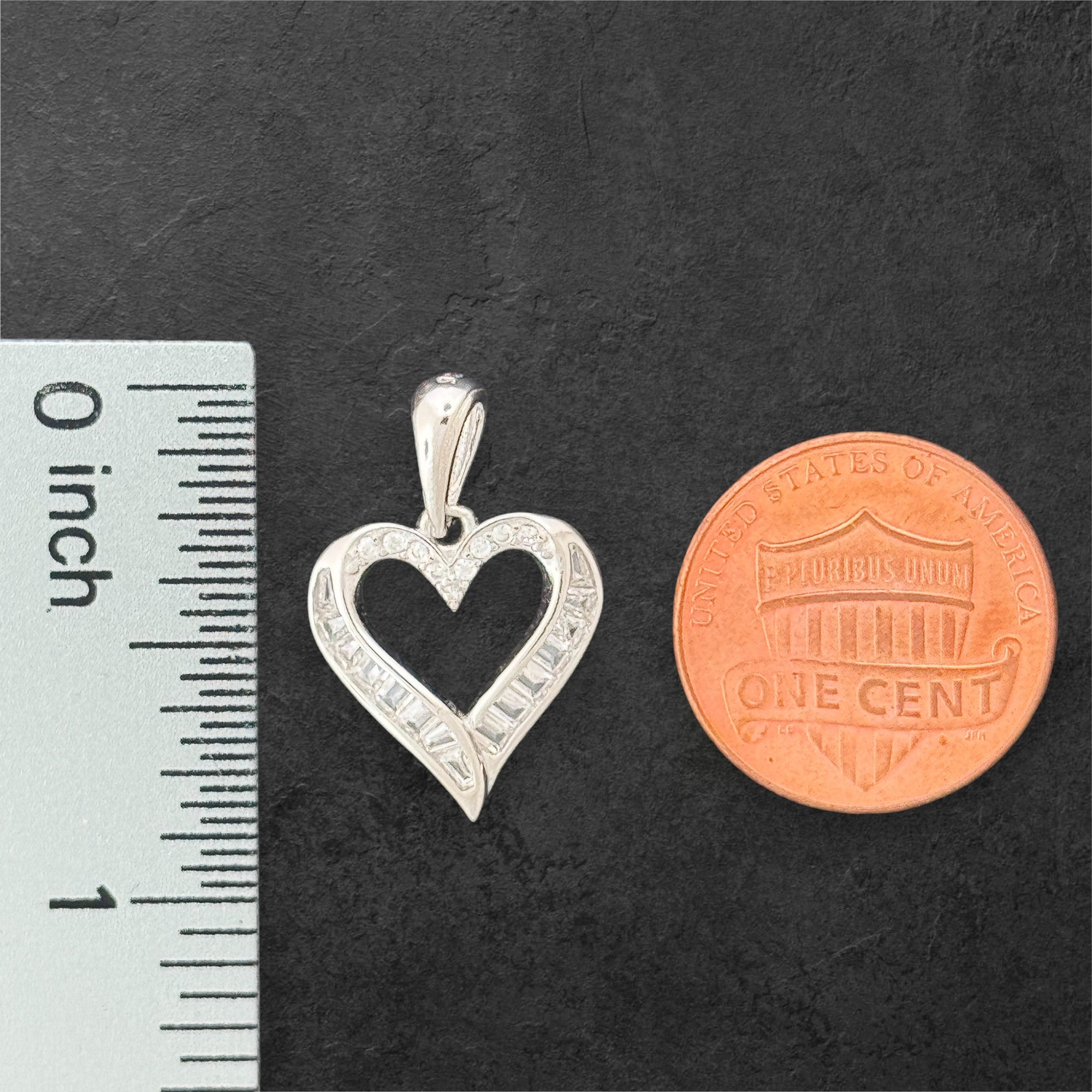 Sterling Silver Open Heart Pendant with Baguette CZ Stones Login to see pricing