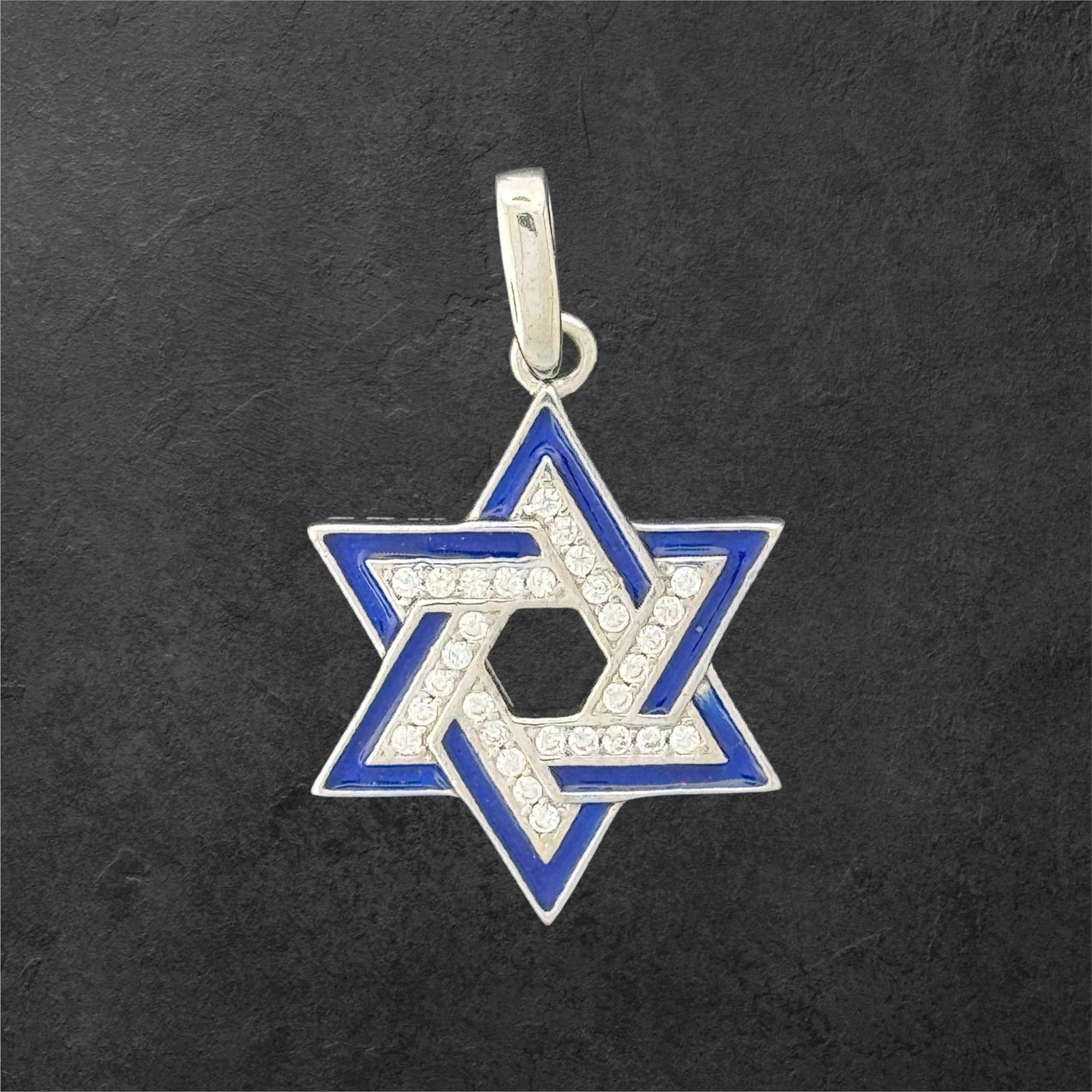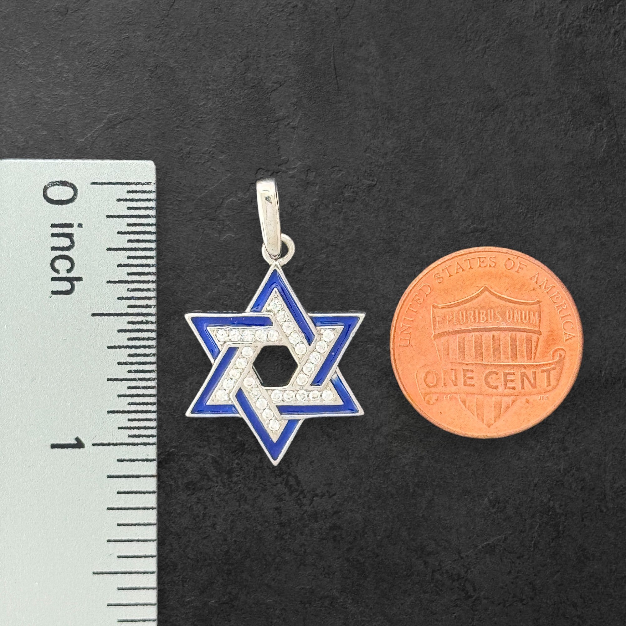 Sterling Silver Star of David Pendant with Blue Enamel and CZ Stones Login to see pricing