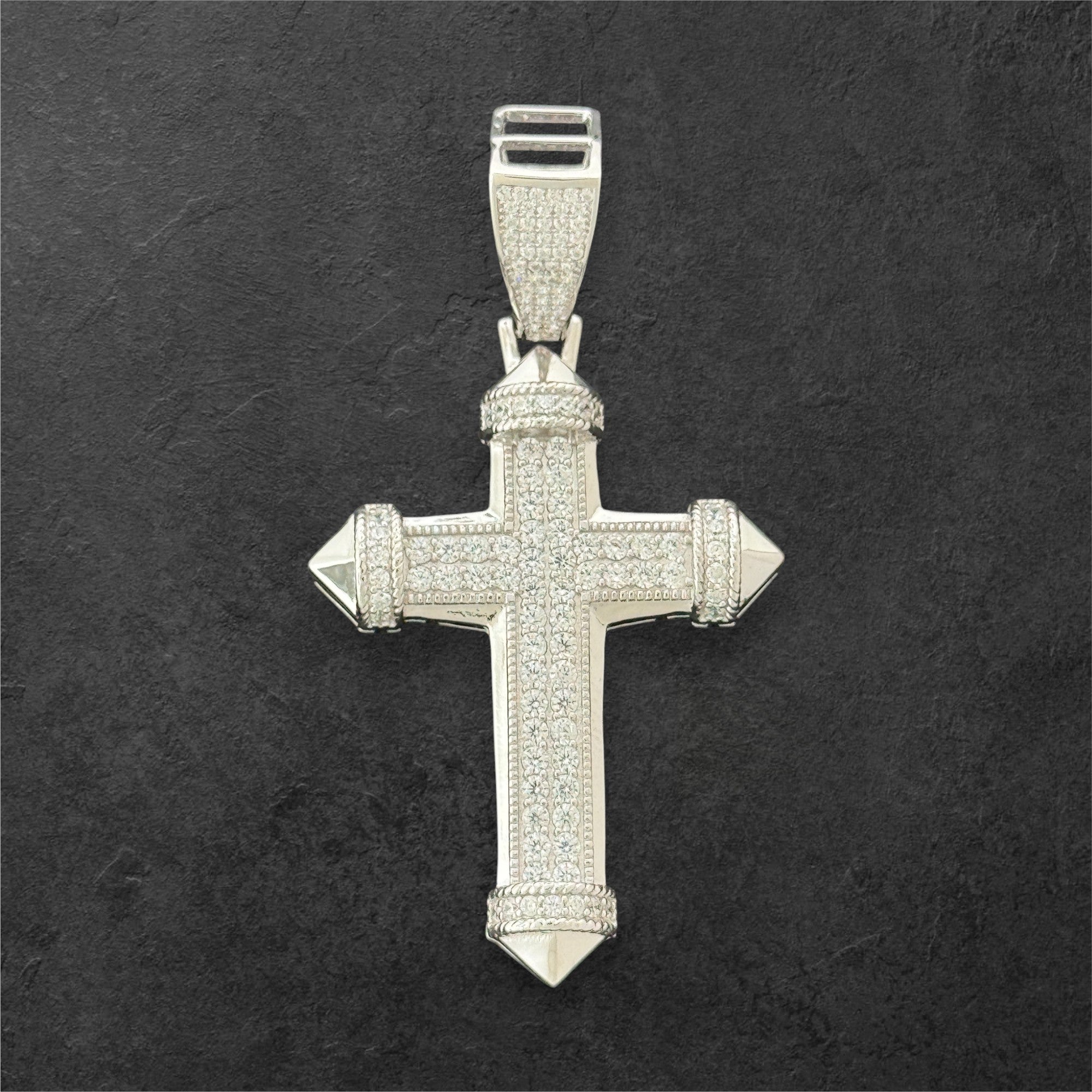 Sterling Silver Cross Pendant with Intricate CZ Design Login to see pricing