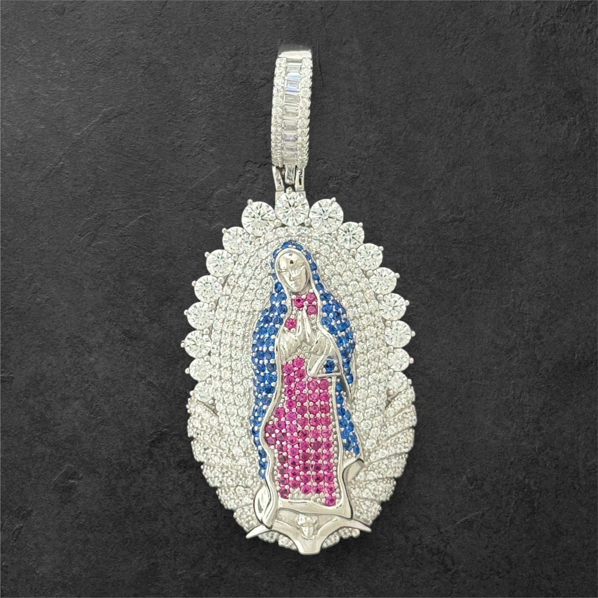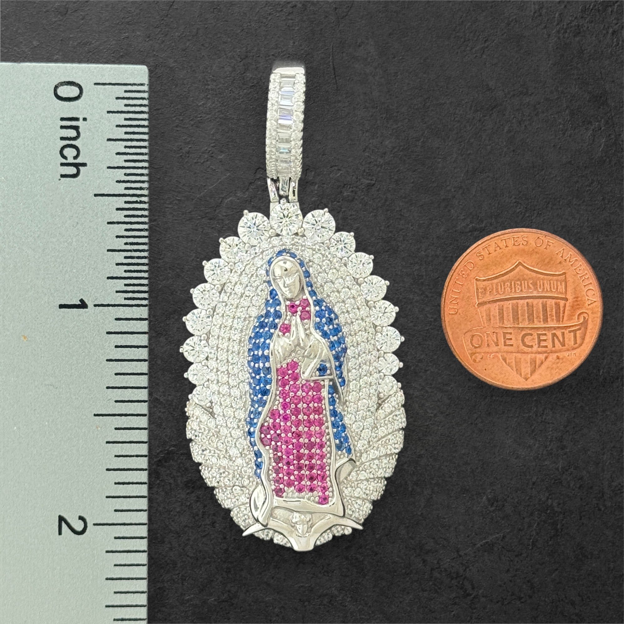 Sterling Silver Virgin Mary Pendant with CZ Stones and Colorful Detailing Login to see pricing