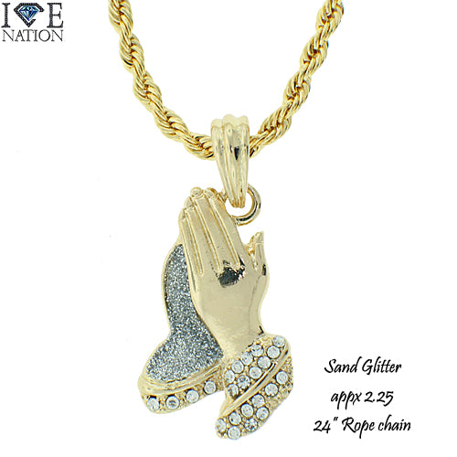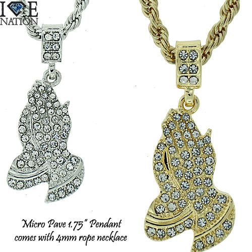 Wholesale Silver Tone Praying Hands Micro Pave Pendant Set Wholesale Login to see pricing