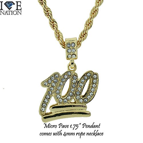Wholesale Gold Tone '100' Micro Pave Pendant MPPN1068 Login to see pricing