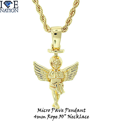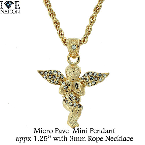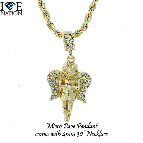 Wholesale Gold Tone Angel Micro Pave Pendant MPPNM3107-ROPE Login to see pricing