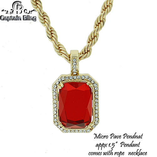 Wholesale Gold Tone Red Rectangular Micro Pave Pendant MPPN1105 Login to see pricing