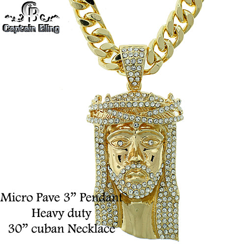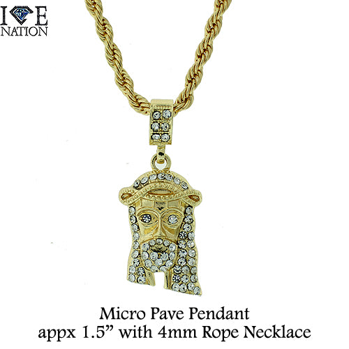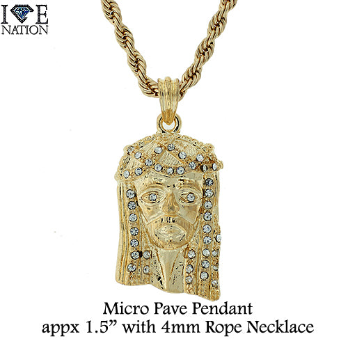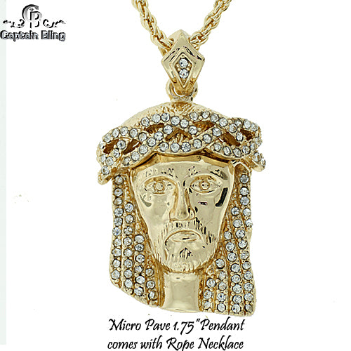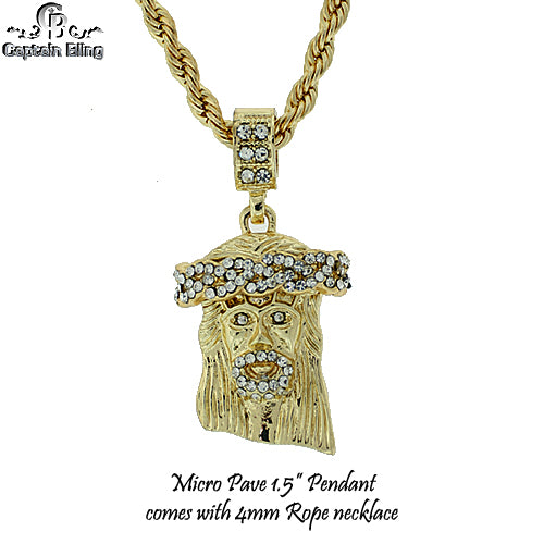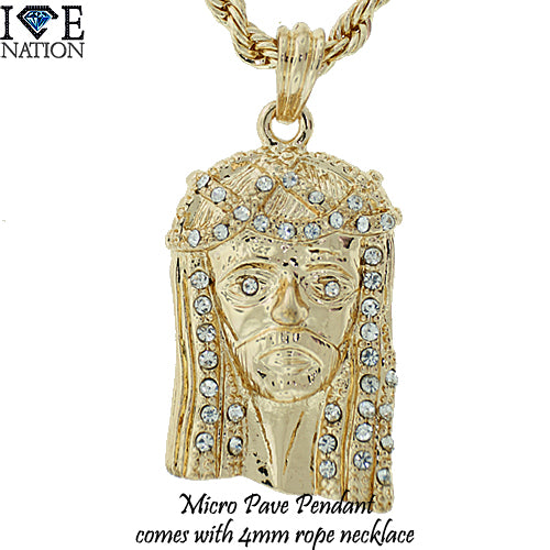 Wholesale Gold Tone Jesus Head Micro Pave Pendant MPPN1058 Login to see pricing