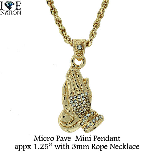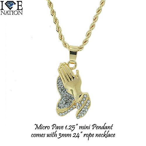 Wholesale Gold Tone Hands in Prayer Micro Pave Pendant MPPNM133 Login to see pricing