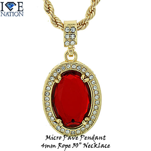 Wholesale Gold Tone Oval Red Micro Pave Pendant MHC13-MINI Login to see pricing