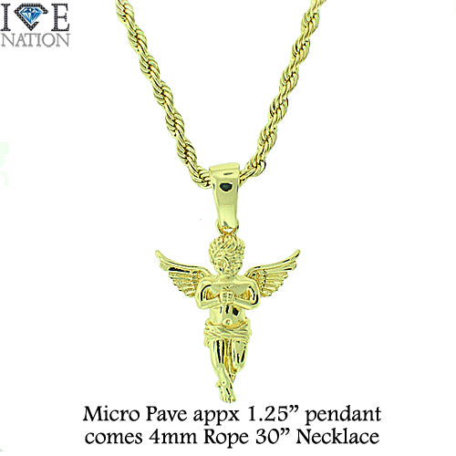 Wholesale Gold Tone Cherub Micro Pave Pendant MPPNM3019-ROPE Login to see pricing
