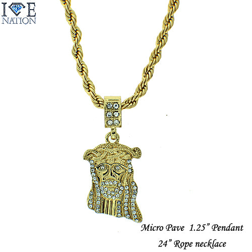 Wholesale Gold Tone Jesus Head Micro Pave Pendant MHC1039 Login to see pricing