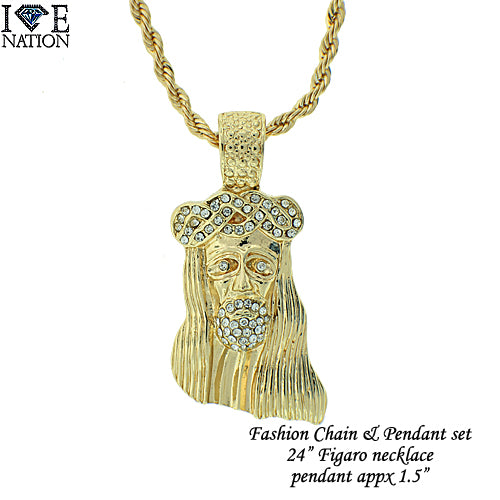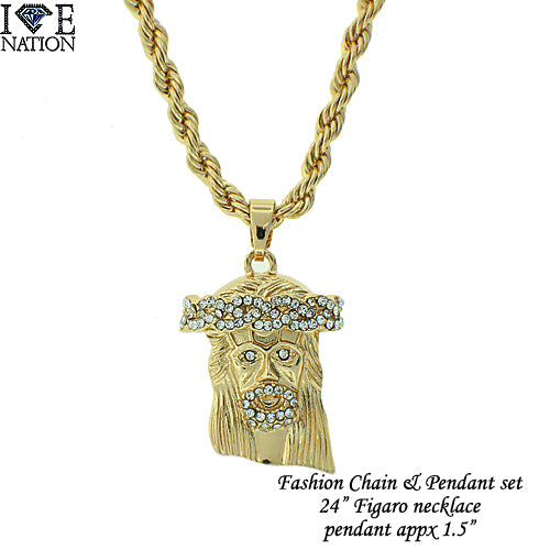 Wholesale Gold Tone Jesus Face Pendant Set Wholesale Login to see pricing