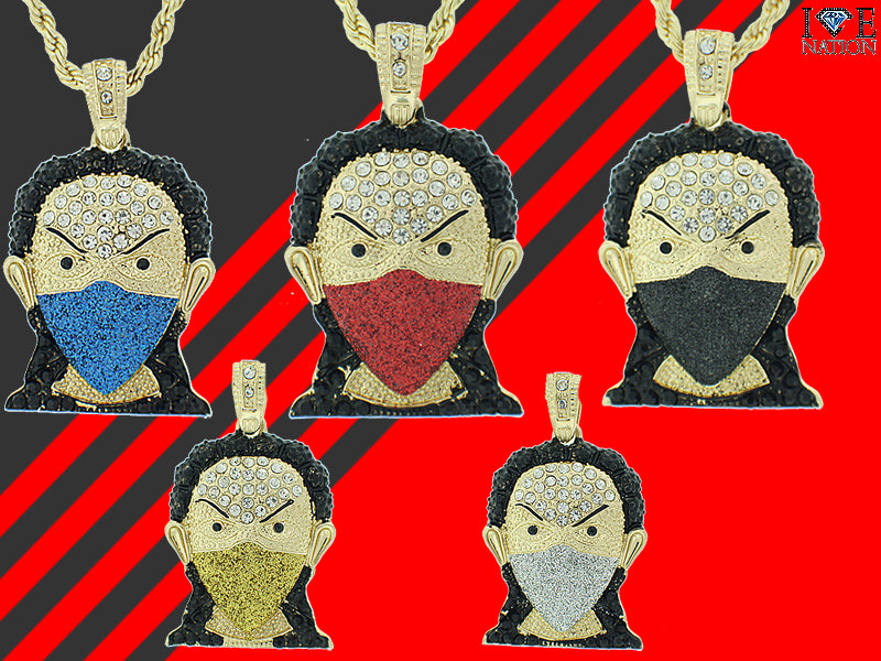Wholesale Gold Tone Masked Face Micro Pave Pendant MPPNM28 Login to see pricing
