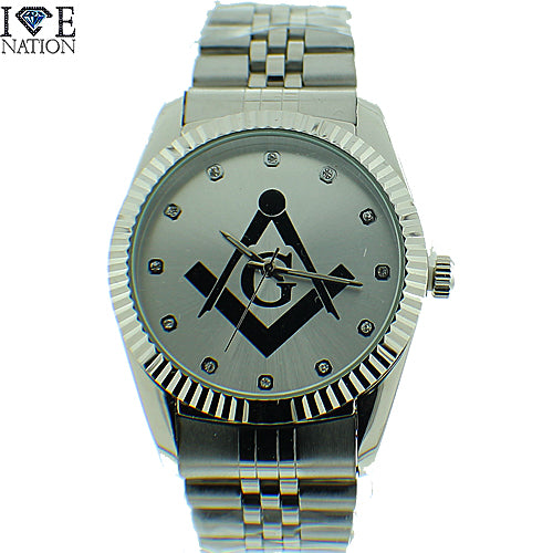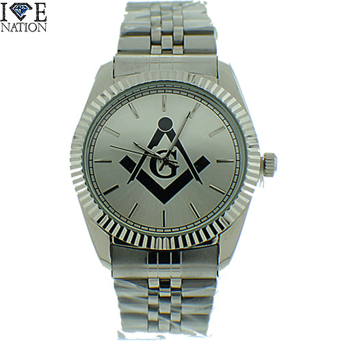 Masonic Elegant Men's Watch Silver Tone with Masonic Symbol - ST.STEEL BAND Login to see pricing