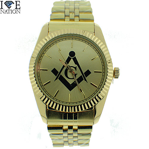 Masonic Gold Tone Men's Watch Stainless Steel Band Square & Compass - WM566 Login to see pricing