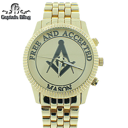 Masonic Gold Tone Men's Watch Stainless Steel Band Elegant Design - WM607 Login to see pricing
