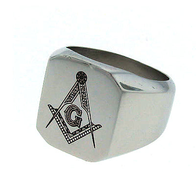Classic Stainless Steel Masonic Ring with Compass & G Login to see pricing