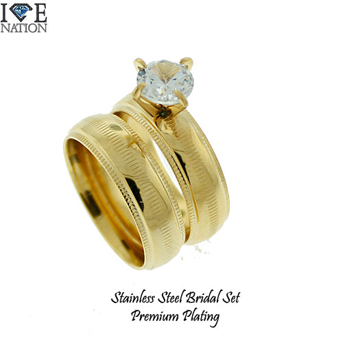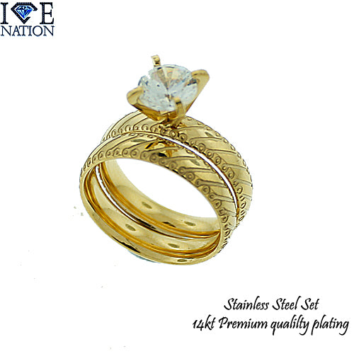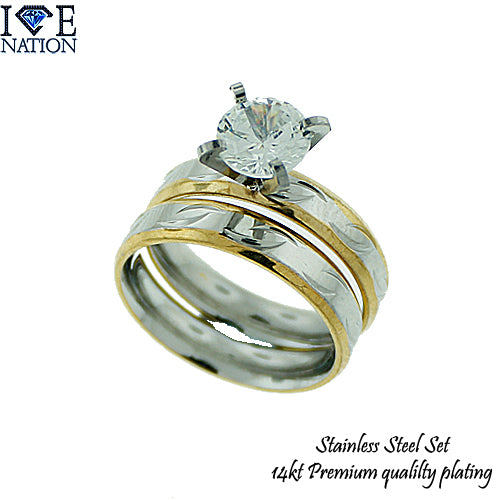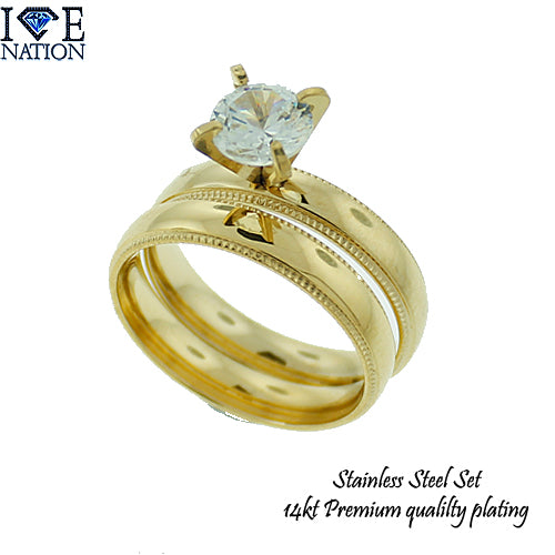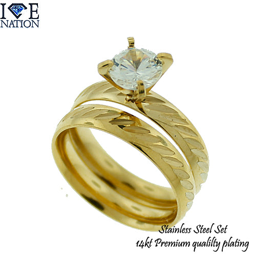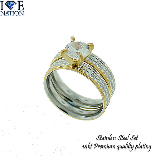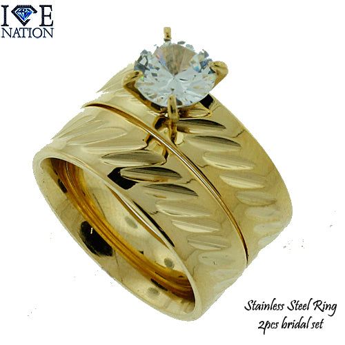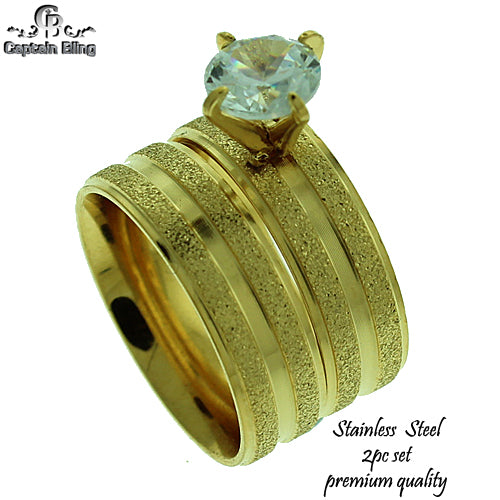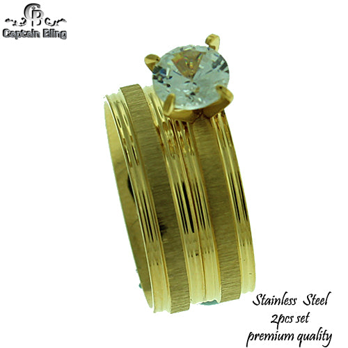 Wholesale Gold Tone Stainless Steel Bridal Set Ring STR703 Login to see pricing