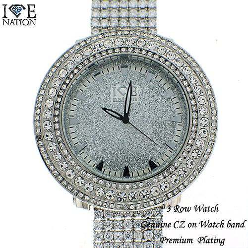 3 ROW WATCH WITH GENUINE CZ WATCH BAND WITH PRONG SETTINGS APPX SIZE ON THE BAND IS 6.5" TOTAL LENGTH OF THE WATCH IS 8.5" APPX.