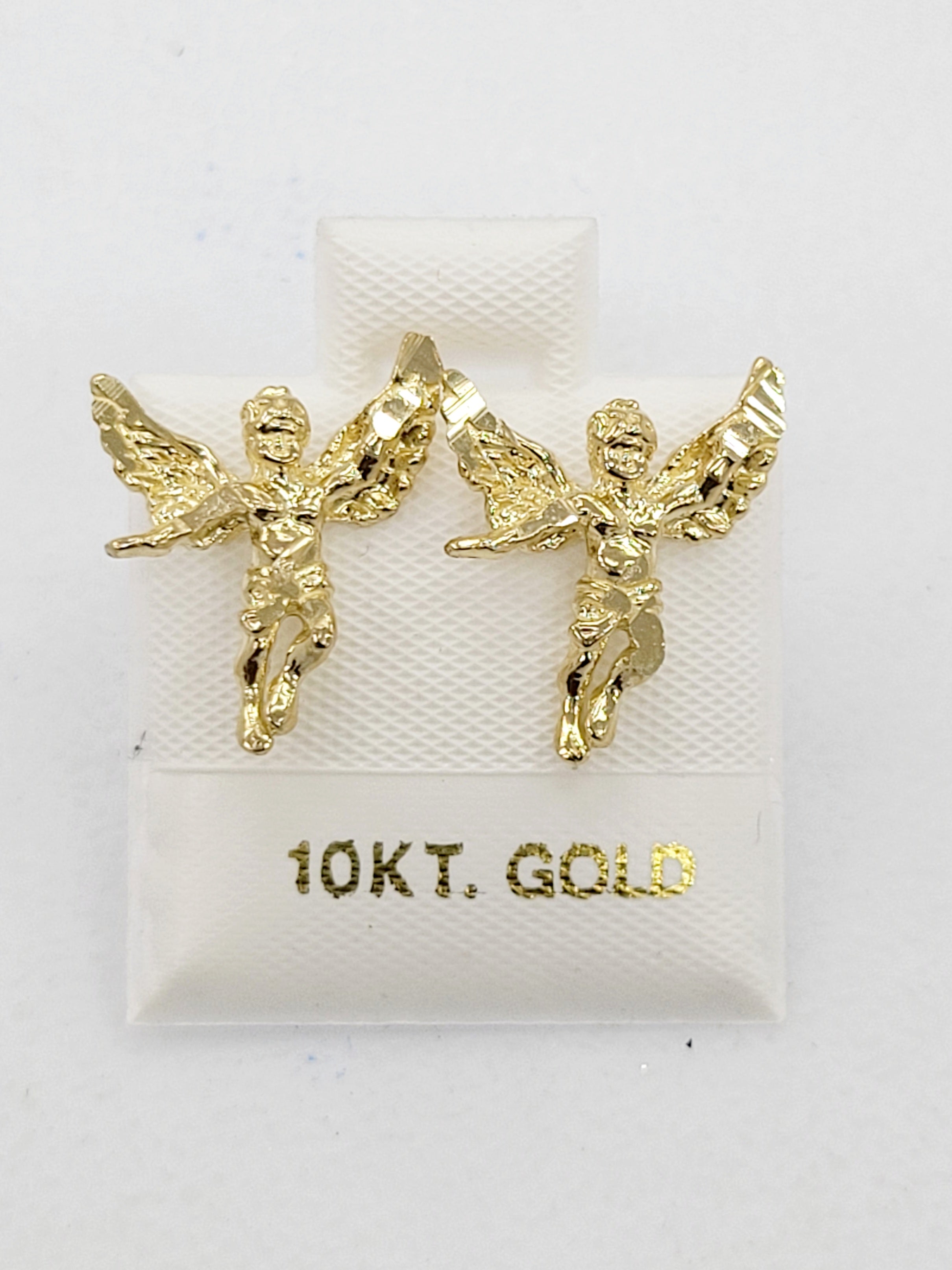 Crafted in radiant 10kt gold, these style earrings offer a bold yet refined statement. Featuring a distinctive High Polish Angel weighing 2.0 grams, they strike the perfect balance between elegance and individuality. Finished with secure butterfly backs for a comfortable fit, these earrings are an ideal choice for those who appreciate timeless luxury with a modern edge