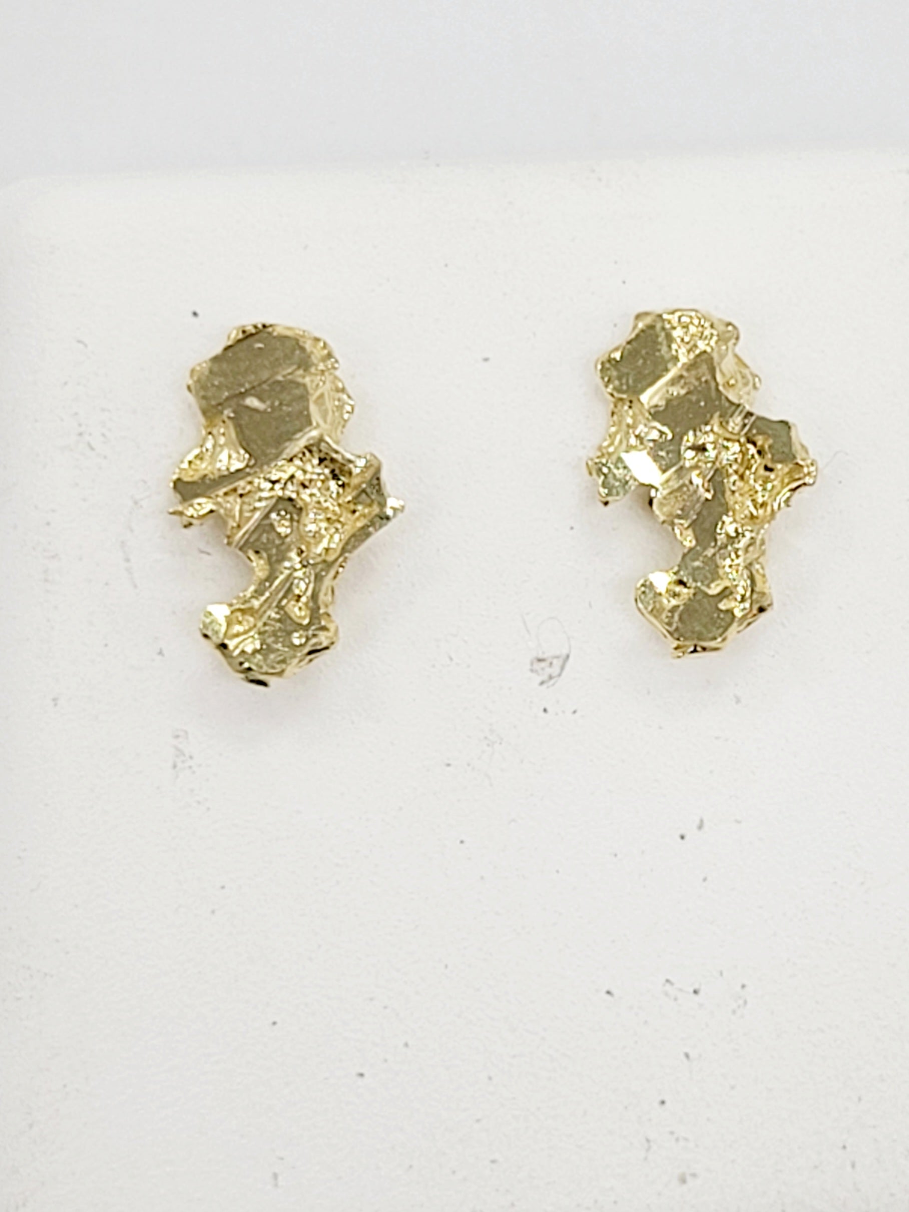 Crafted in radiant 10kt gold, these nugget-style earrings offer a bold yet refined statement. Featuring a distinctive nugget texture and weighing 1.3 grams, they strike the perfect balance between elegance and individuality. Finished with secure butterfly backs for a comfortable fit, these earrings are an ideal choice for those who appreciate timeless luxury with a modern edge