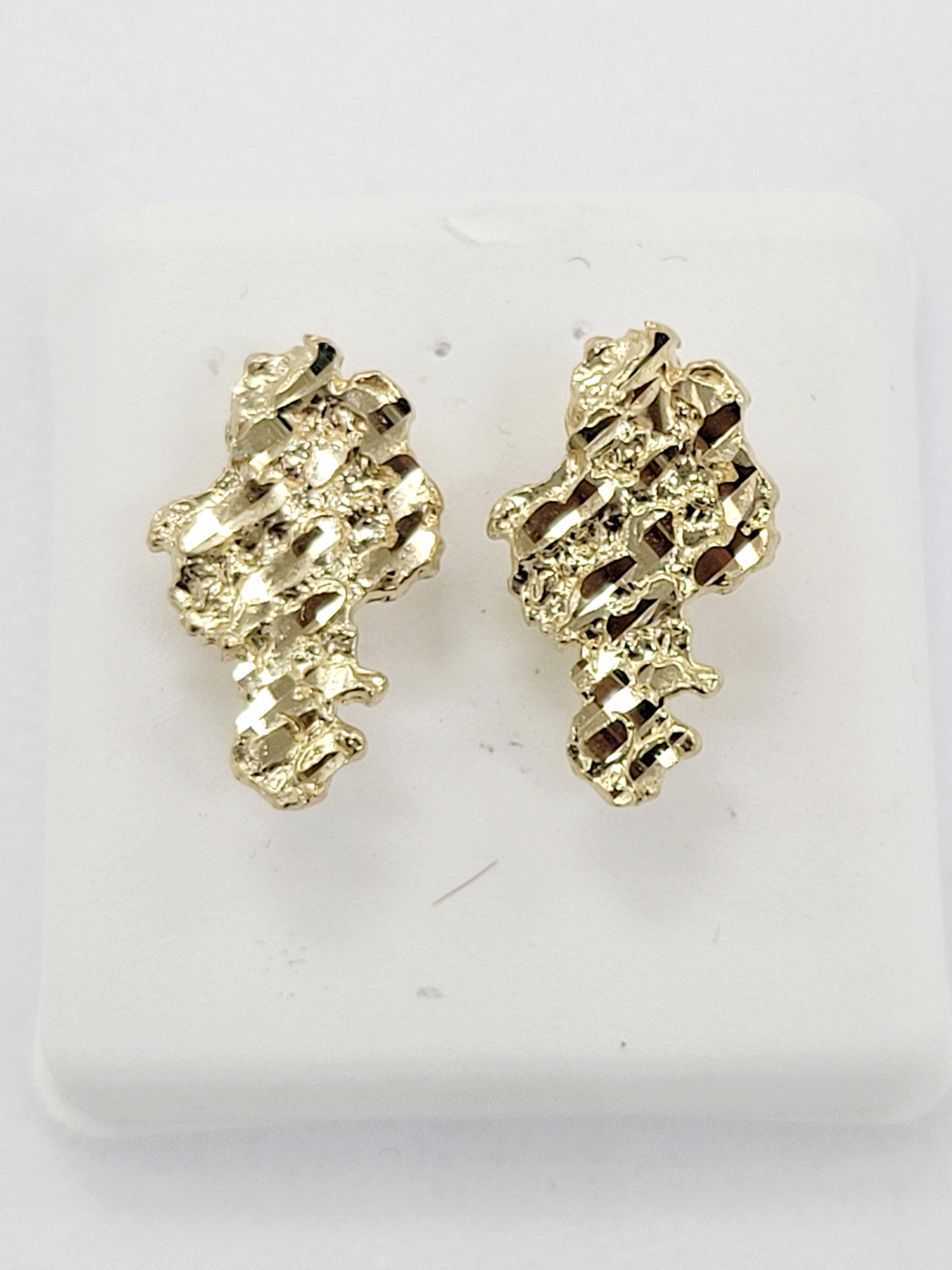 Crafted in radiant 10kt gold, these nugget-style earrings offer a bold yet refined statement. Featuring a distinctive nugget texture and weighing 1.6 grams, they strike the perfect balance between elegance and individuality. Finished with secure butterfly backs for a comfortable fit, these earrings are an ideal choice for those who appreciate timeless luxury with a modern edge