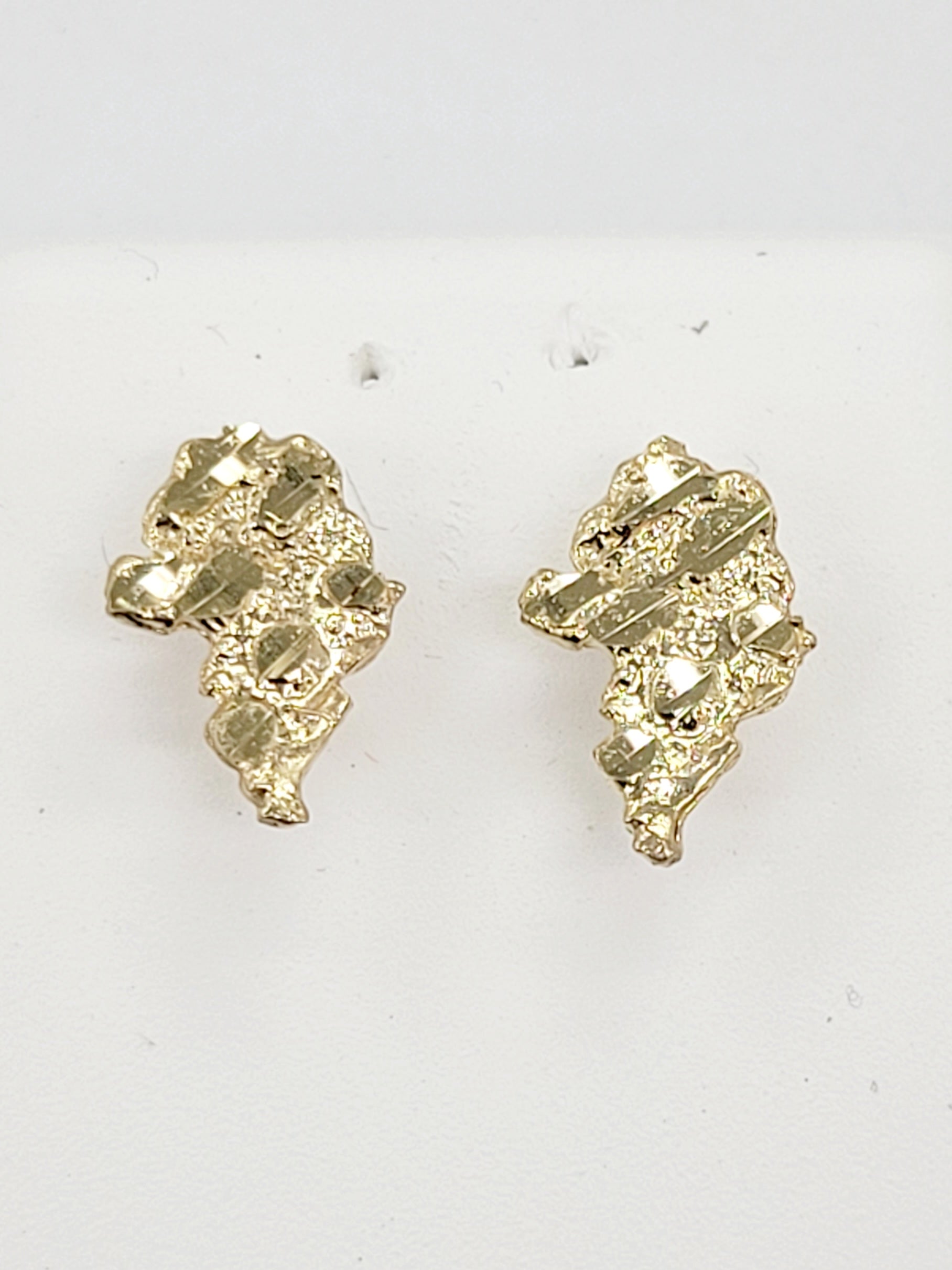 Crafted in radiant 10kt gold, these nugget-style earrings offer a bold yet refined statement. Featuring a distinctive nugget texture and weighing 1.1 grams, they strike the perfect balance between elegance and individuality. Finished with secure butterfly backs for a comfortable fit, these earrings are an ideal choice for those who appreciate timeless luxury with a modern edge