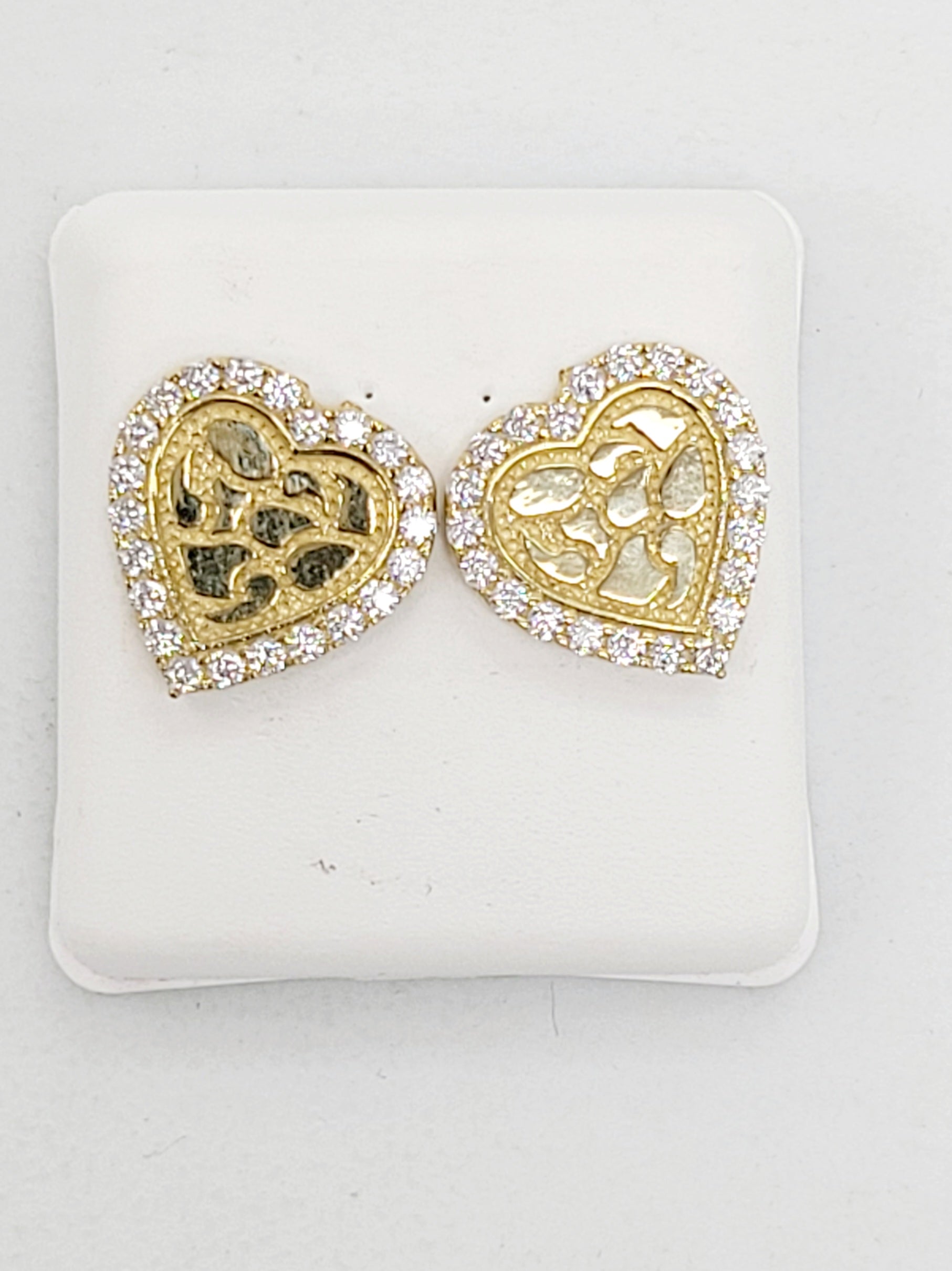 10KT Gold Nugget Shape Heart CZ Earring -025