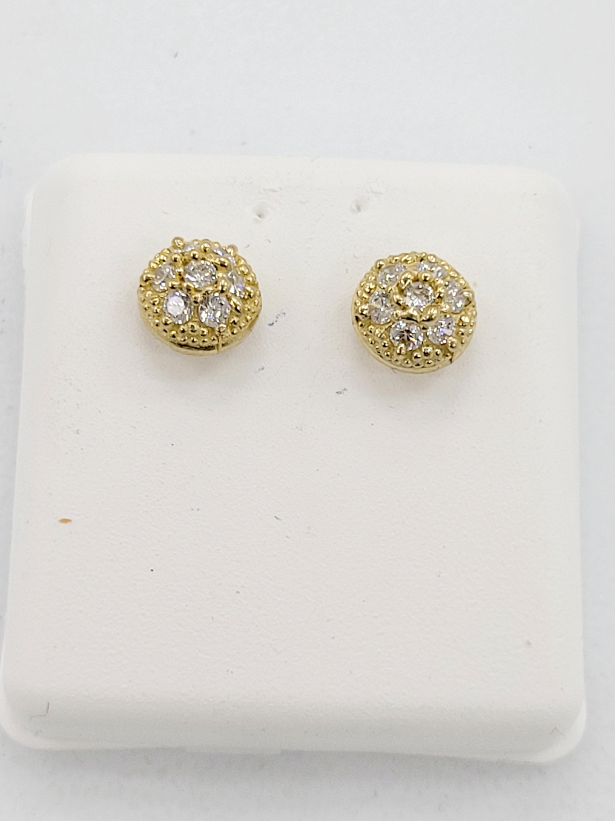 Crafted in radiant 10kt gold, these style earrings offer a bold yet refined statement. Featuring a distinctive CZ Roung shape and weighing 1.7 grams, they strike the perfect balance between elegance and individuality. Finished with secure butterfly backs for a comfortable fit, these earrings are an ideal choice for those who appreciate timeless luxury with a modern edge