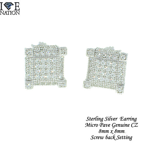 STERLING SILVER MEN'S MICRO PAVE EARRING SCREW BACK SETTING PREMIUM GENUINE CZ RHODIUM PLATING PRONG SETTING