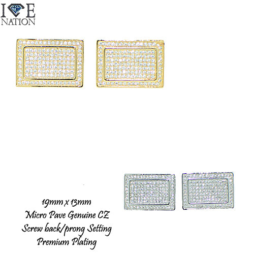 MEN'S MICRO PAVE CZ EARRING RHODIUM AND 14KT GOLD PREMIUM PLATING SCREW BACK SETTINGS MADE OUT BRASS MATERIAL GENUINE CLEAR CZ AND BLACK CZ MICRO PAVE SETTINGS EACH STONES IS HAND MADE 4 PRONG SETTINGS 14KT WHITE GOLD RHODIUM FINISH/GM METAL PREMIUM PLATING Pictures might not describe how good has the Earing cz stones and settings